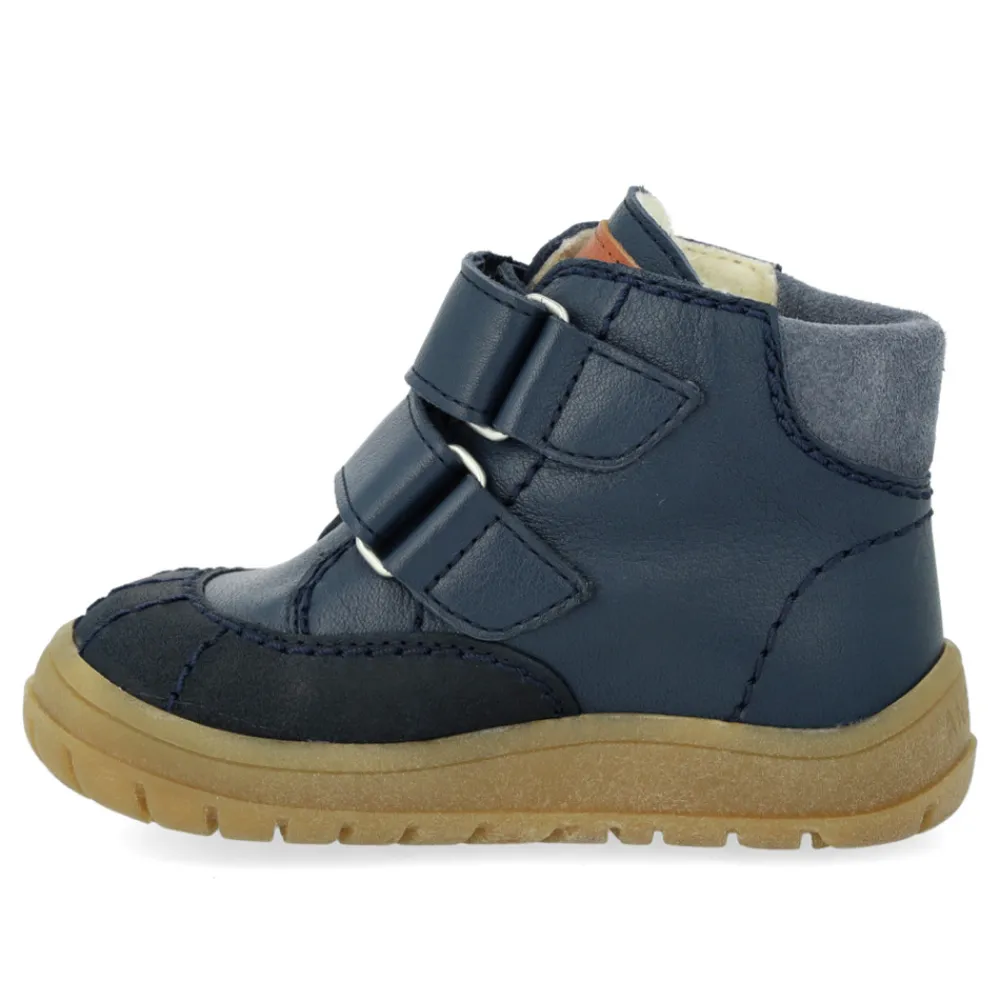 Rummelig begynder TEX-støvle i læder med dekorative kontraststikninger, der er designet til at holde små fødder varme og tørre, uanset vejret.