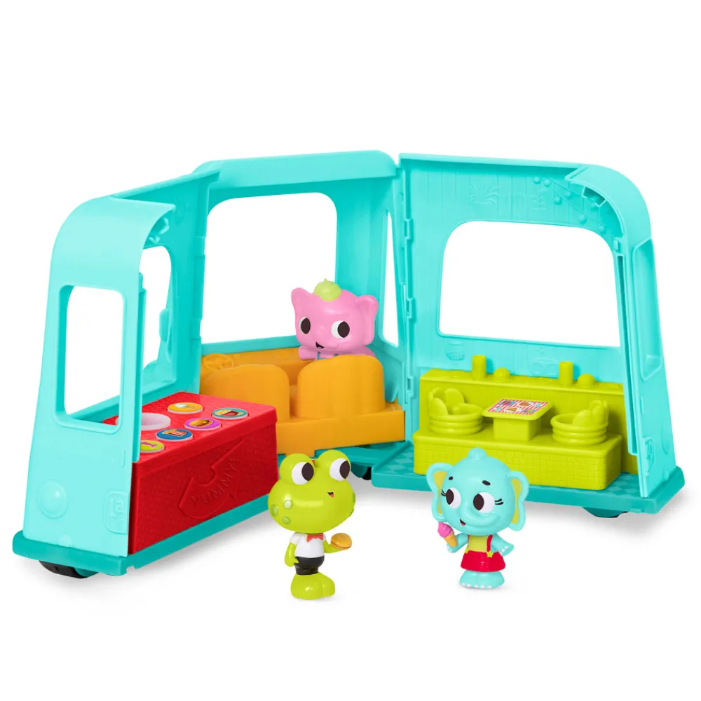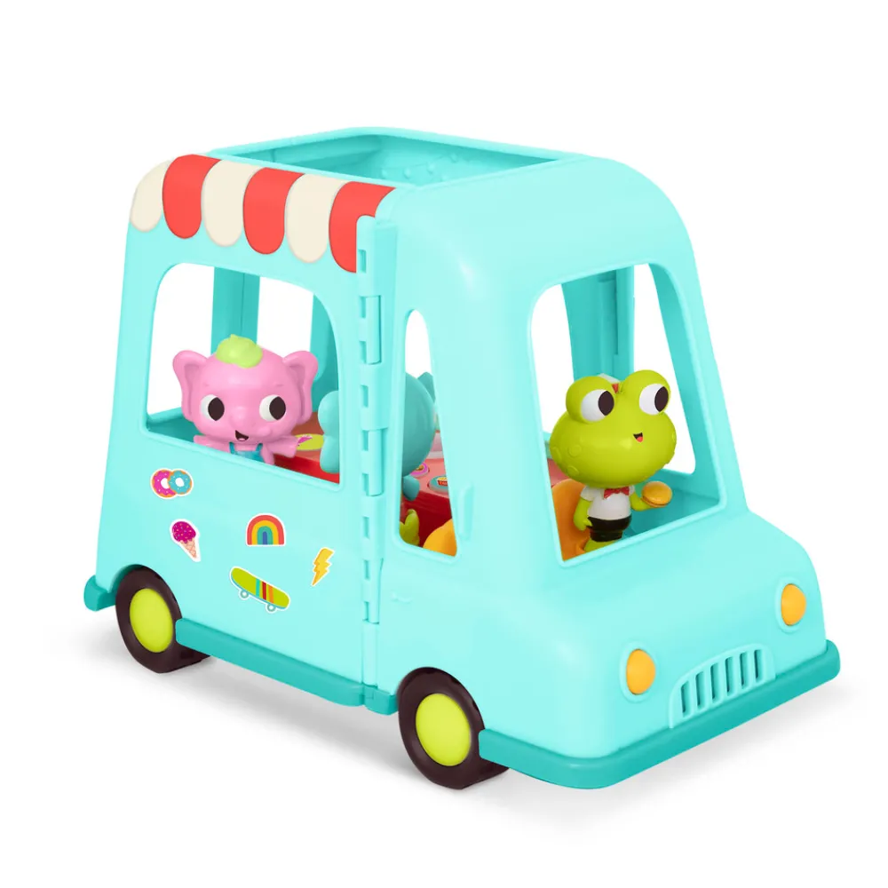 Den sjove is bil har tre søde figurer. Der er også en masse knapper du kan trykke på med forskellige lyde og melodier.