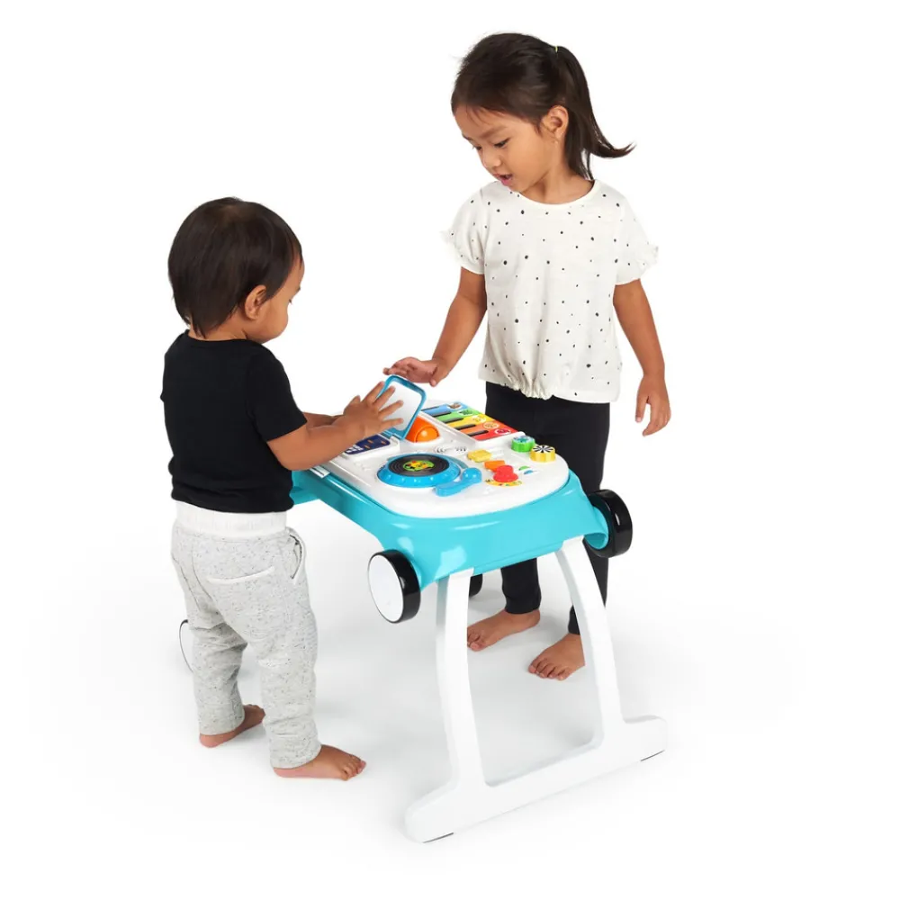Det musikalske aktivitetscenter bringer musik ind i legen og tilskynder til selvudfoldelse. Musical Mix ‘N Roll 4-i-1 gå vogn med aktiviteter fra Baby Einstein vokser med dit barn fra siddende til stående, til at danse og udforske! Hver af de 4 tilstande vil fange dit barn på dets aktuelle stadie i livet. Når det bruges som et gulvlegetøj, indgår det aftagelige keyboard i den spirende musikers åbningsnummer. Gå-tilstand lader barnet øve sig på at stå og gå. Dit barn kan skubbe musikken og lyset med sig for at give en mobil optræden! Skab et DJ-bord og eksperimenter med tempo og lyd for at skabe unikke baby-beats. Dette multifunktionelle legetøj fungerer endda som et bord til små børn til enhver aktivitet, som dit kreative barn kan drømme om.