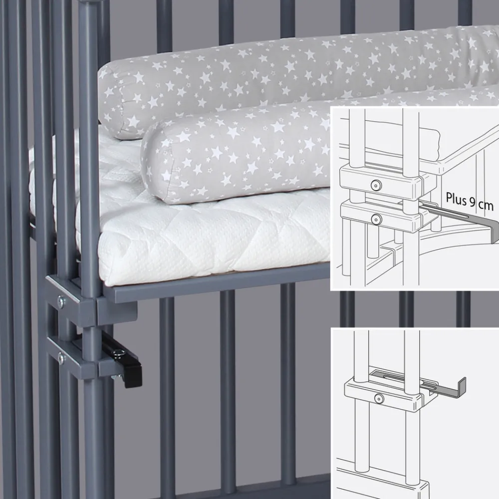 Så snart din baby er vokset ud af tremmesengen, kan du på ingen tid omdanne bedside crib’en til et skrivebord, en bænk, en puslebord til dukker eller et legebord.
