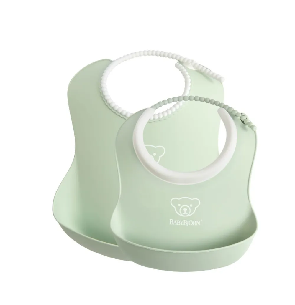 BabyBjörn blød hagesmæk er det uundværlige redskab ved spisetid. Den bløde hagesmæk er ergomnomisk designet til at passe perfekt til dit barns krop og den har en dyb lomme som fanger al den spildte mad. Snoren er designet som en perlekæde og kan tilpasses nærmest trinløst omkring dit barns hals. Den bløde hagesmæk er nem at rengøre og kan sagtens gå i opvaskemaskinen – Placer den dog i øverste hylde.