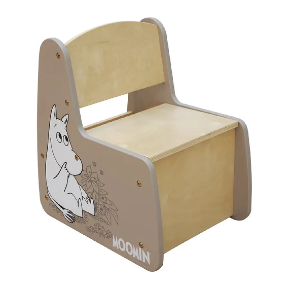 Sød Mumi Opbevaringsstol, designet til at bringe både glæde og orden ind i børns daglige rutine. Denne opbevaringsstol er perfekt til at holde bøger, legetøj og andre skatte organiseret. Stolen har en legende Mumi-figur på siden, som tilføjer et fantasifuldt touch til enhver børneværelsesindretning. De neutrale beige og trætoner blender godt ind med forskellige indretningsstile. Moomin Opbevaringsstolen er mere end bare en praktisk stol, da den også er et fremragende redskab til at fremme udviklingsfærdigheder. Ved at opmuntre børn til at organisere deres ejendele hjælper det med at udvikle ansvarlighed og selvstændighed. Stolens design gør det nemt for små hænder at laste og losse, hvilket fremmer finmotorikken og øje-hånd-koordinationen. Desuden kan den bruges i fantasifuld leg, hvilket øger kreativiteten og kognitiv vækst. Uanset om den bruges til opbevaring af bøger eller som en del af en rolleleg, er denne Mumi opbevaringsstol en vidunderlig tilføjelse til ethvert børneværelse.