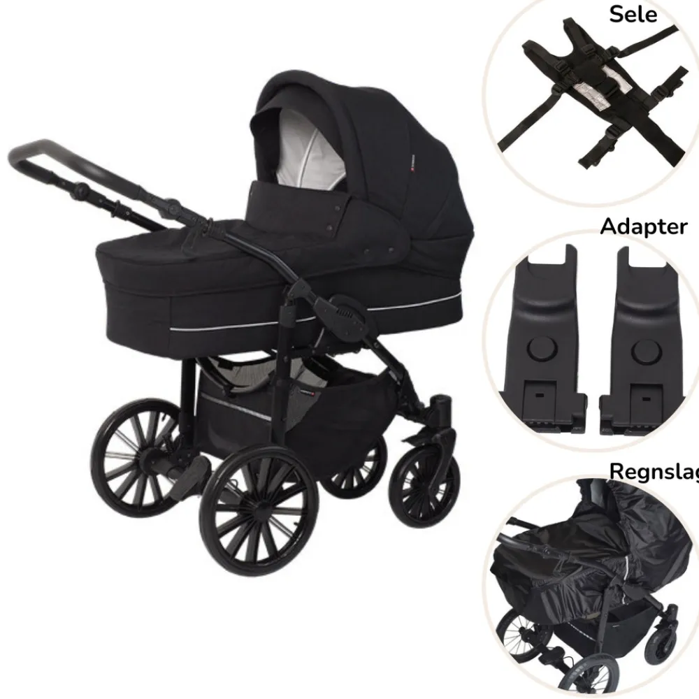Adapter: Nordic autostolsadapter er god at have, når det lille barn er faldet i søvn i sin autostol. Autostolsadapter sættet monteres let på nordic stellet og passer til de mest gængse autostole.