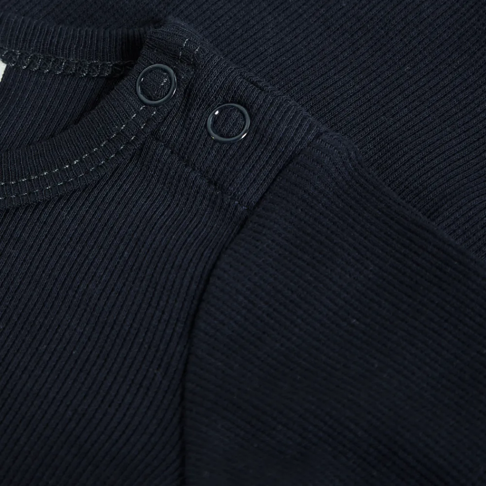 Blødt og smidigt basisplagg fra BeKids i tynd ribstrikket bomuldsblanding. Det elastiske design giver en behagelig pasform, der tilpasser sig barnets bevægelser. Perfekt som lag-på-lag-plagg for ekstra varme og komfort året rundt. Praktiske trykknapper i skridtet gør det nemt at tage tøjet af og på.