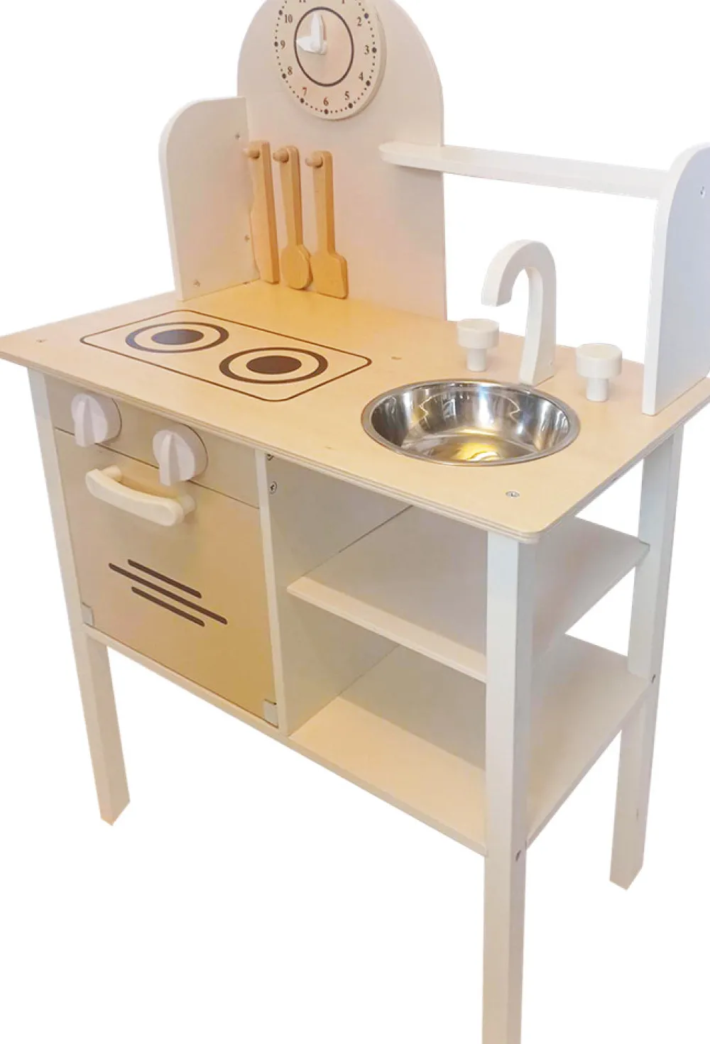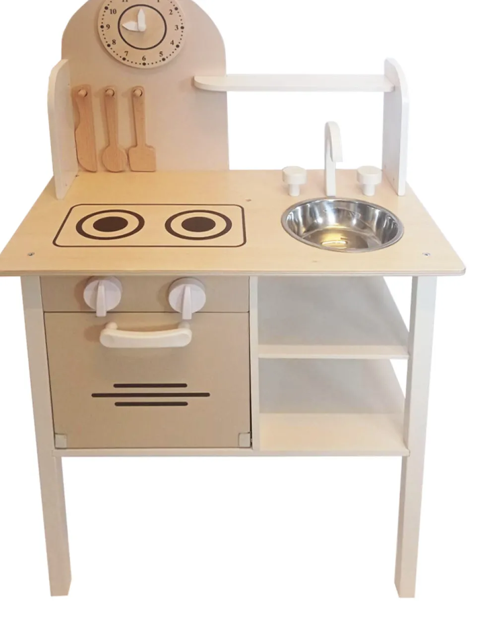 Det fineste legekøkken i træ, i nordiske farver, passer perfekt til børneværelset. Her kan dit barn udfolde sig som kok eller bager i sit helt eget køkken.