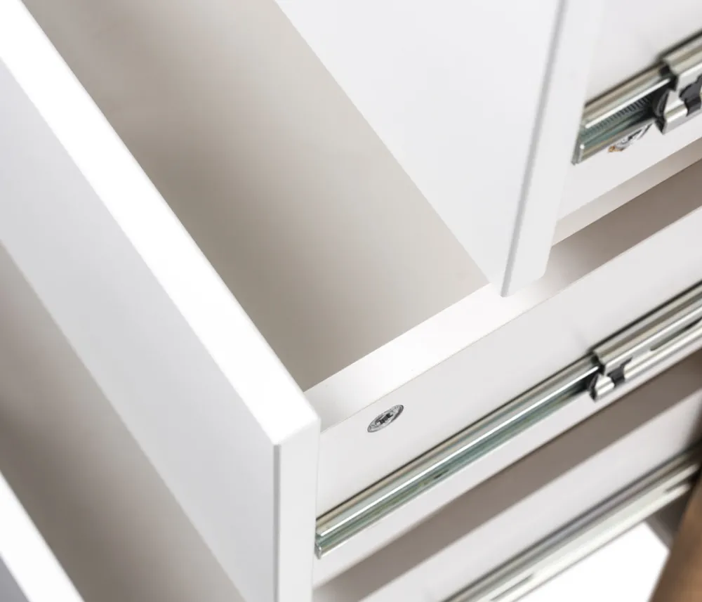 - Materialer: massiv eg og hvidmalet plade