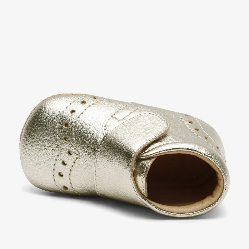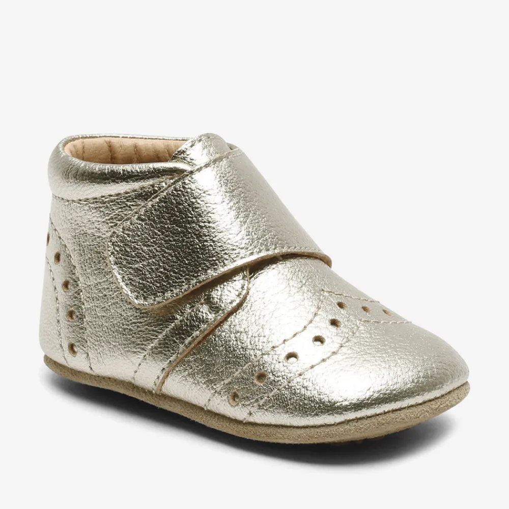 Hjemmesko, som også kan bruges som prewalker med velcrolukning, skindfoer og en blød sål af ruskind og skridsikker gummi, der giver den optimale støtte. Hjemmeskoen er produceret i 100% naturligt og åndbart læder, der er lukket rundt om foden og samtidig giver foden plads til at vokse.