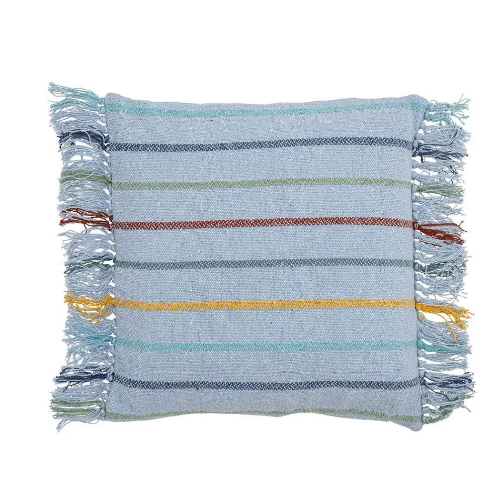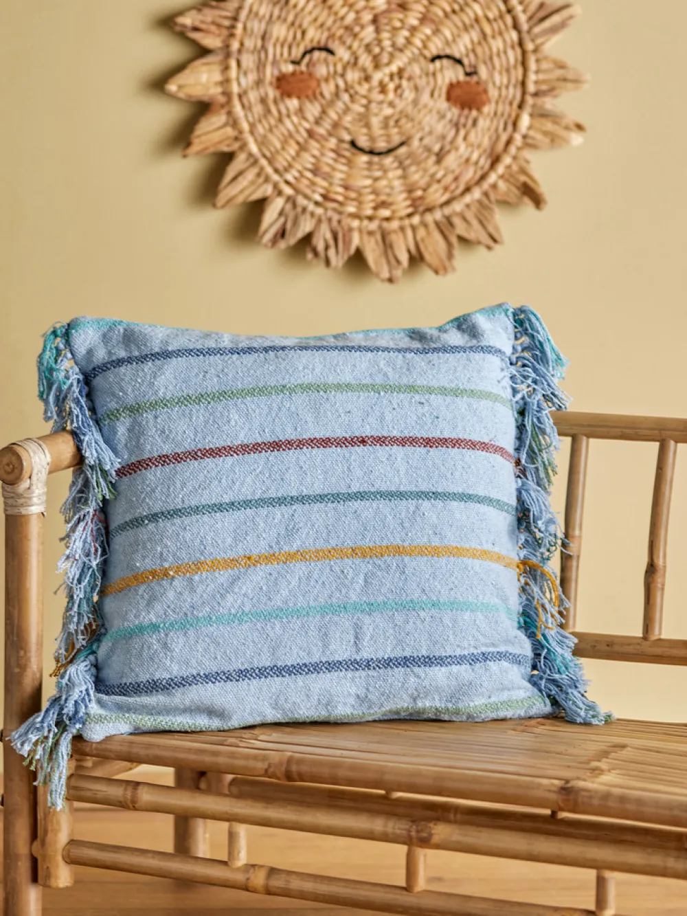 Frey Puden fra Bloomingville MINI er lavet af genanvendt bomuld i en lys nuance og prydet med striber i flotte farver. Med sine fine frynser langs kanterne er puden både dekorativ og indbydende, og tilfører et hyggeligt og varmt touch, uanset hvor den pynter i hjemmet. L: 65 x B: 30 cm.