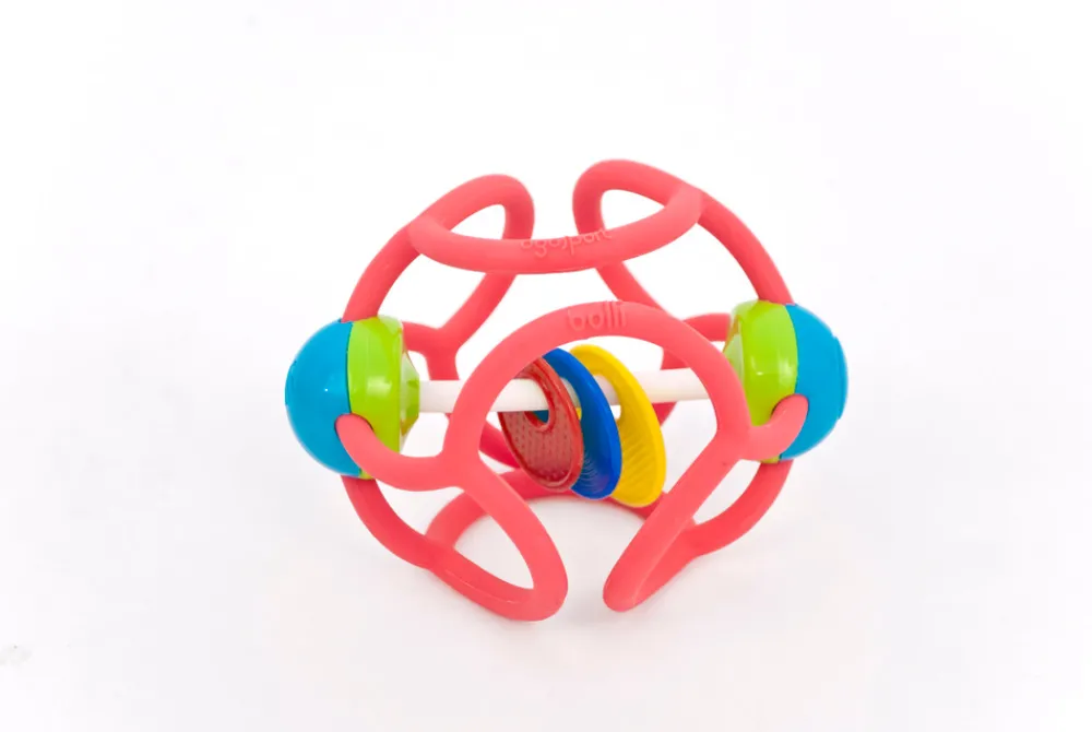 Ranglen, som er lavet i 100% silikone, kan trilles, kastes, vrides og bides i. Ranglen er også rigtig god, når de ømme gummer starter, samt til sansemotorisk udvikling.