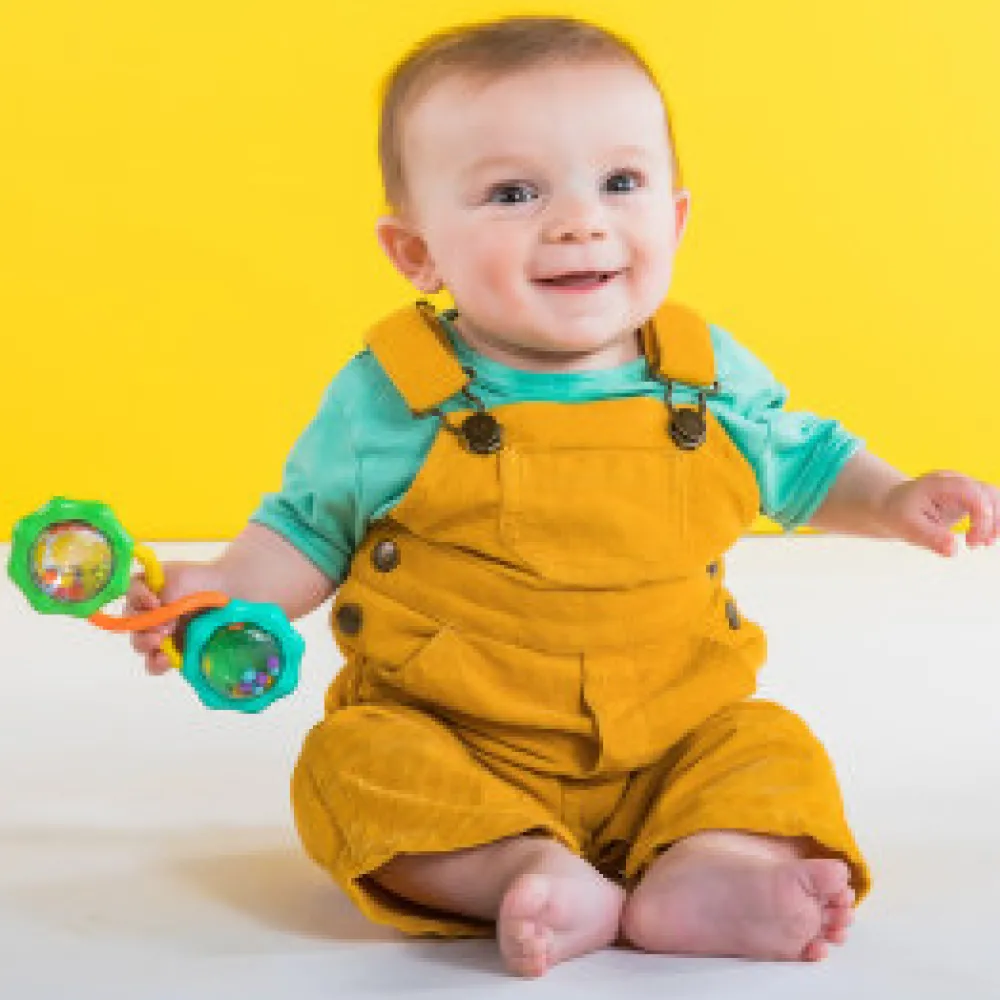 Din baby er på vej til at blive en mester i vægtløftning med denne vægtstang til babyer fra Bright Starts! Med muntre gule og blå detaljer og et sjovt håndtag, der kan drejes, er denne rangle bare så sød og lige så stærk som din voksende baby. Håndtag, rasleperler og spejle gør dette legetøj til en perfekt tilføjelse til legetøjskassen. Tag ranglen med i pusletasken, når I skal på farten, så er I sikre på at få et smil med også!