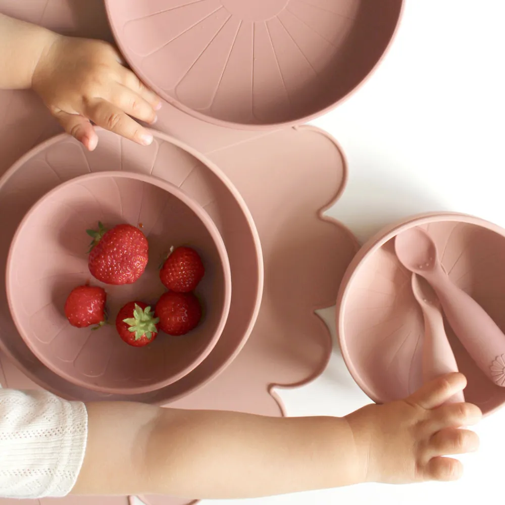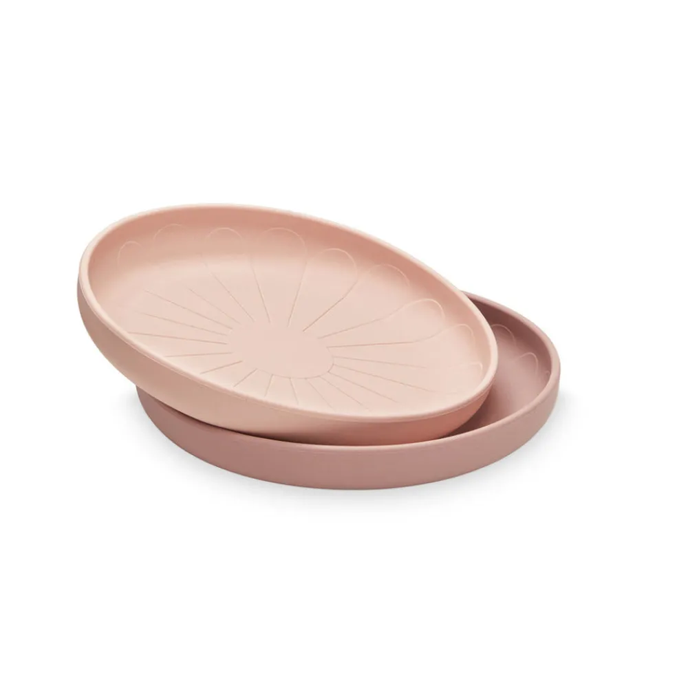 Sæt med to pæne og praktiske silikonetallerkener designet med et smukt blomstermotiv, der giver de små mulighed for at spise med stil. Med sit poetiske design og fine farve er silikonetallerkenen en elegant tilføjelse til familiens middagsbord.