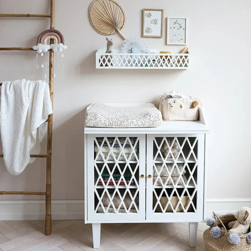 Praktisk Pusleopbevaring til bleer og andre puslenødvendigheder. Perfekt til at skabe orden på puslebordet og super nem at flytte rundt i huset samt tage med på tur eller i sommerhuset.