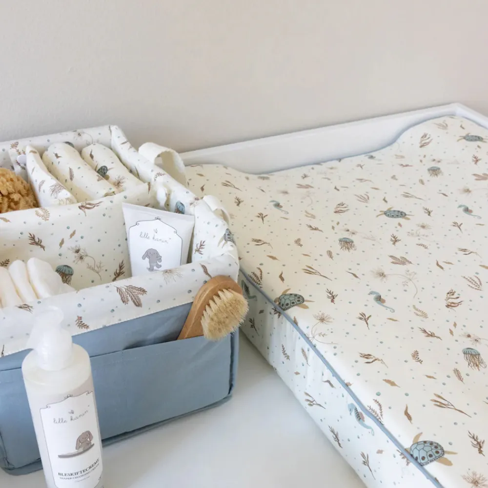 Praktisk Pusleopbevaring til bleer og andre puslenødvendigheder. Perfekt til at skabe orden på puslebordet og super nem at flytte rundt i huset samt tage med på tur eller i sommerhuset.