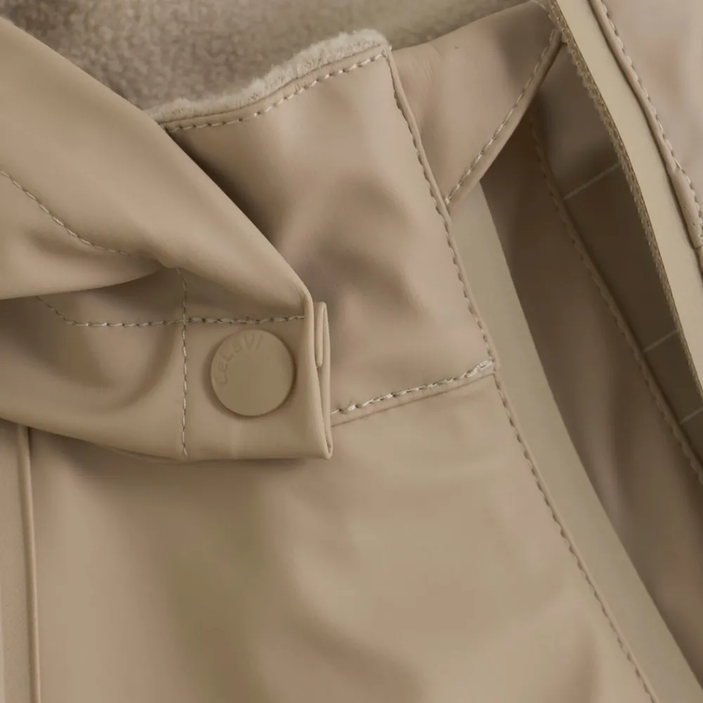 Praktisk regnsæt i PU-materiale med svejsede sømme, som sikrer vandtæthed. Ideelt til leg i regn og mudder. Justerbare stropper og elastiske detaljer for god pasform.