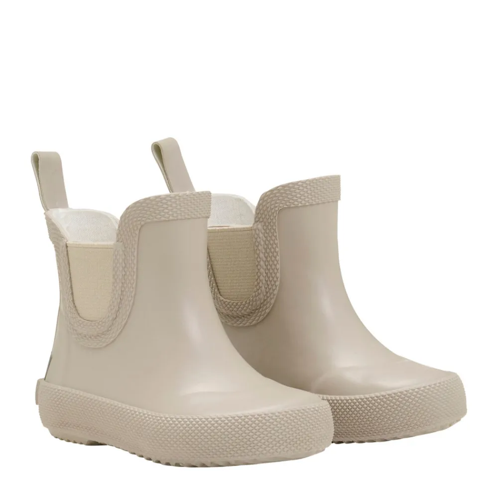 Ensfarvede korte gummistøvler med smart detalje på siden. Støvlerne er af kvalitets naturgummi og har CeLaVi reflekslogo og refleksstribe på hælen for bedre synlighed i mørket. Da gummistøvler til børn ofte bliver brugt flere timer ad gangen, er det vigtig for CeLaVi, at de er komfortable og funktionelle. Modellen er smallere i hælen, for at børnene bedre vil kunne bevæge sig, når de går, løber og leger. For at støvlen sidder optimalt på barnets fod, skal den som tommelfingerregel være fodens længde plus en finger (1-1,5 cm), så der er plads til storetåen og en tyk strømpe.