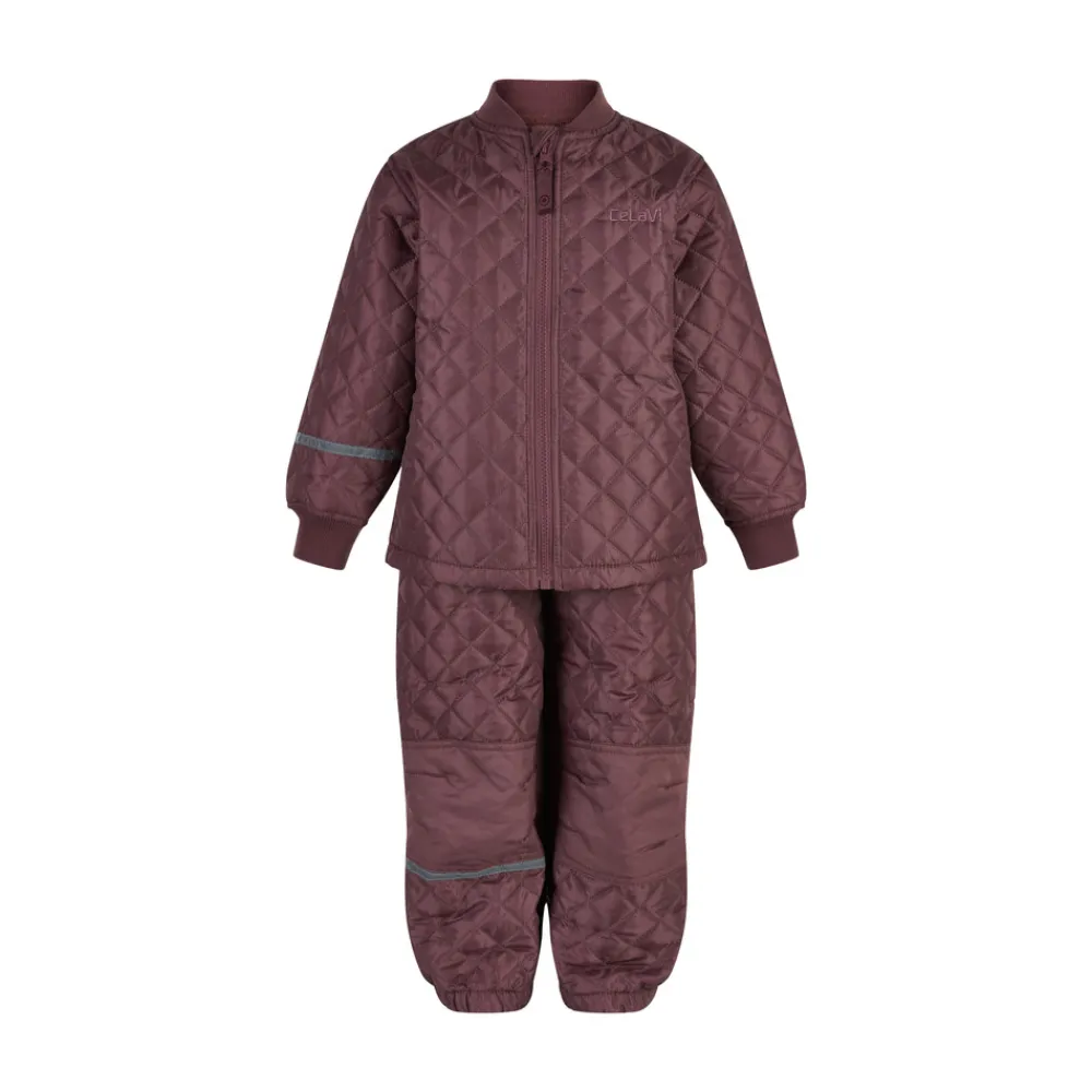Til dage, hvor det er for varmt til vintertøj og for koldt i en tynd sommerjakke, er termotøj fra CeLaVi perfekt. Kan bruges alene eller indenunder regntøjet for at give lidt ekstra varme. Termotøjet er ikke vandtæt, men på knæ og bagdelen er der tilføjet et lag Oxford nylon, som er imprægneret med en gennemsigtig PU-coating på bagsiden, der gør disse udsatte områder mere slidstærke og vandafvisende.