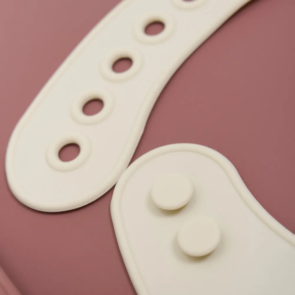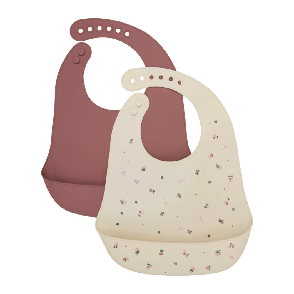 Spisesmæk i silikone. Praktisk hagesmæk der er blød og nem at bruge til baby og børn. Med praktisk opsamler der gør spisetiden nemmere.