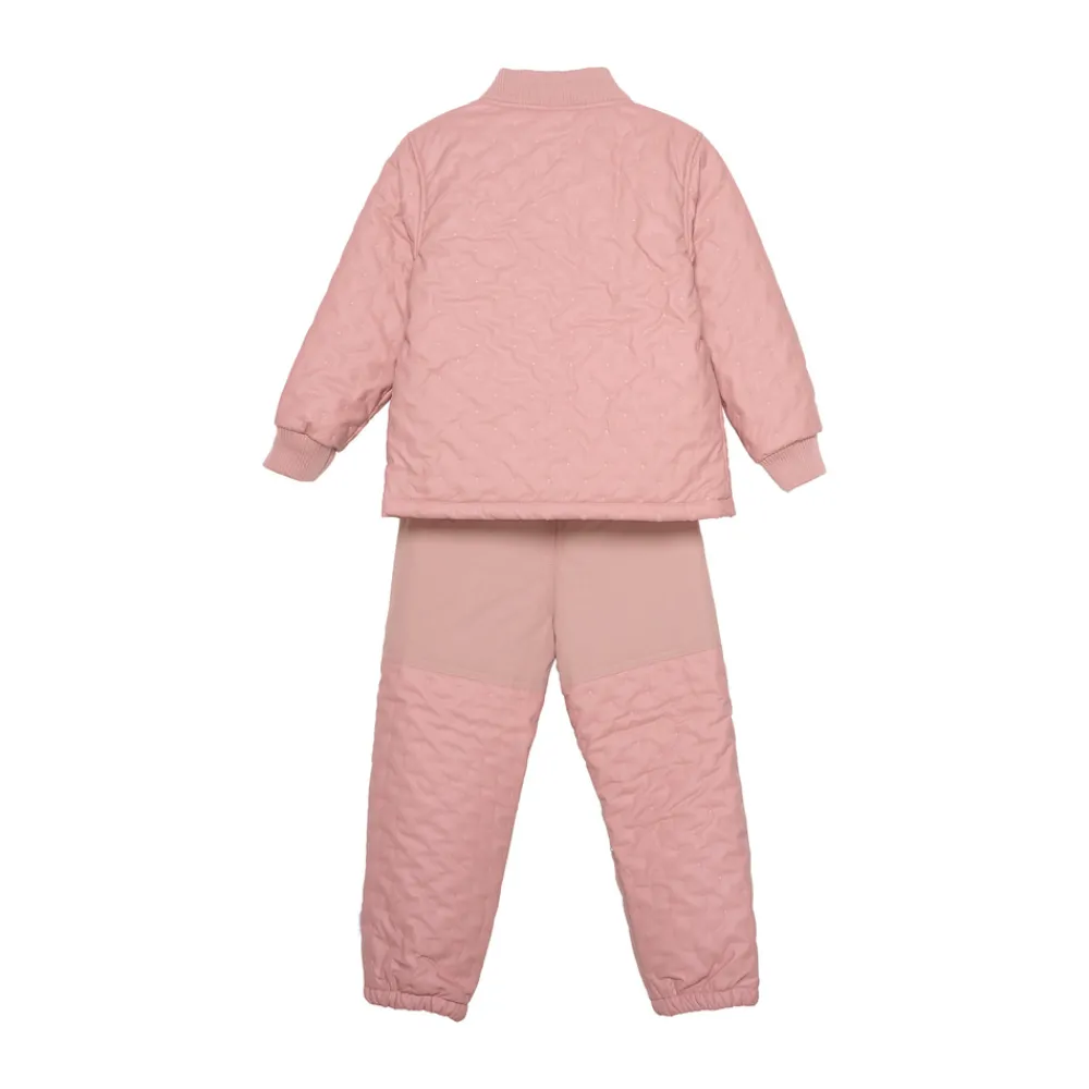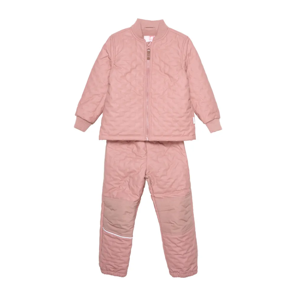 Termotøj med PU-belægning, som gør termotøjet vandtæt. Derudover er sættet foret indvendigt. Ekstra forstærket på knæ og bagpå på bukserne. Bukserne har desuden elastik i talje og ved ankler. Jakken har ribkant ved hals og håndled samt lynlåslukning. CeLaVi-logo foran.