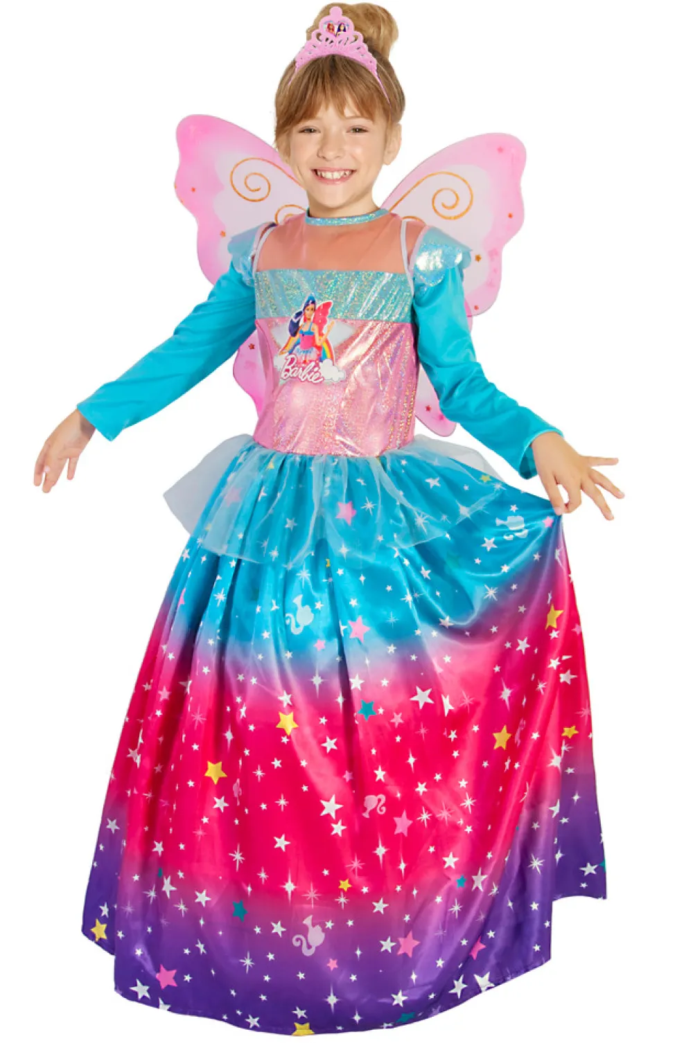 Se ud som en ægte Barbie Eventyrprinsesse, kostume indeholder kjole, vinger og diadem