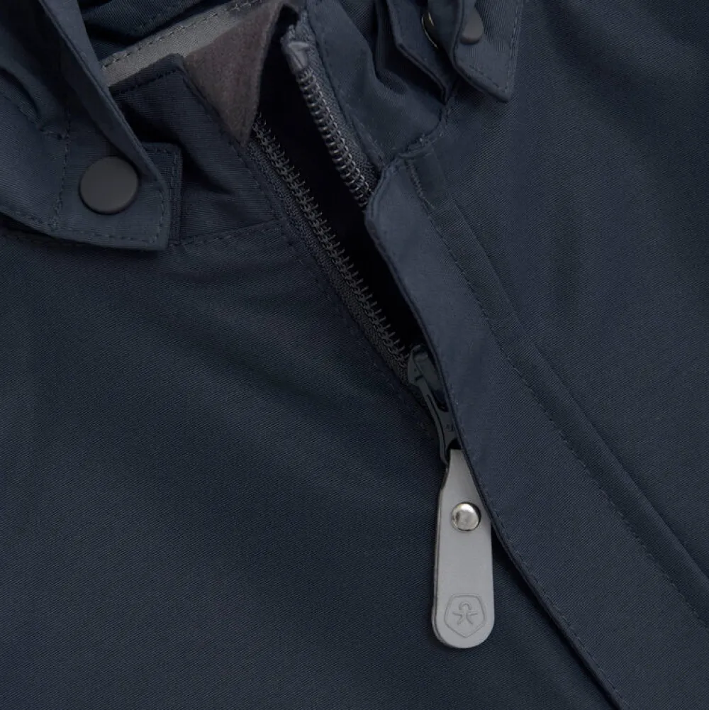 Varm flyverdragt i slidstærkt og delvist genanvendt materiale med color block design. Dragten er imprægneret med BIONIC FINISH® ECO og er åndbar, vind- og vandtæt, så dit barn kan være ude i regn, sne og blæst uden at blive koldt og vådt. Testet slidstyrke på >60.000 gnidninger og åndbarhed på 8.000g. Flyverdragten lukkes med kvalitetslynlås foran og ved de udvendige lommer. Hagebeskytter sørger for, at lynlåsen ikke generer under hagen. Flyverdragten har aftagelig hætte. Justerbare støvlestropper i silikone, som kan placeres under støvlerne for at forhindre at buksebenene kryber op. Refleksdetaljer bagpå og på ærmet for øget synlighed. Med navneskilt indeni for nem identifikation. Certificeret i hht. GRS – Made of 60% Recycled Material CERES-0366