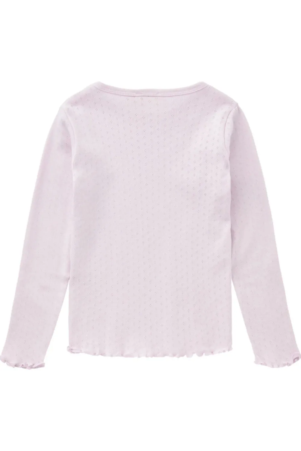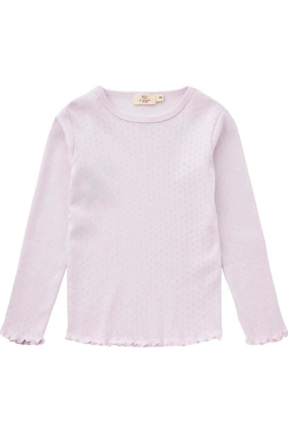 Denne t-shirt med pointelle-mønster kombinerer stil og komfort, den er perfekt til foråret og de varme sommer dage. Det fine og enkle pointelle-mønster giver t-shirten et fint og elegant look, den er designet med et let og luftigt fit, der gør den velegnet til både leg og afslapning, grundet god bevægelsesfrihed. 100% økologisk bomuld, et super blødt og åndbart materiale.
