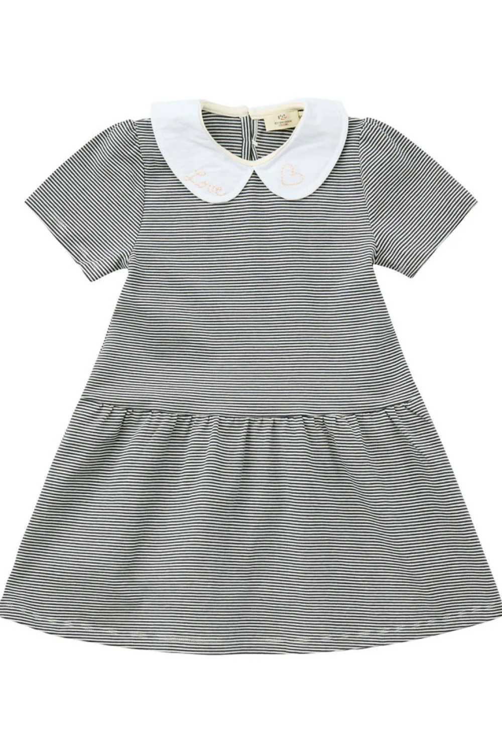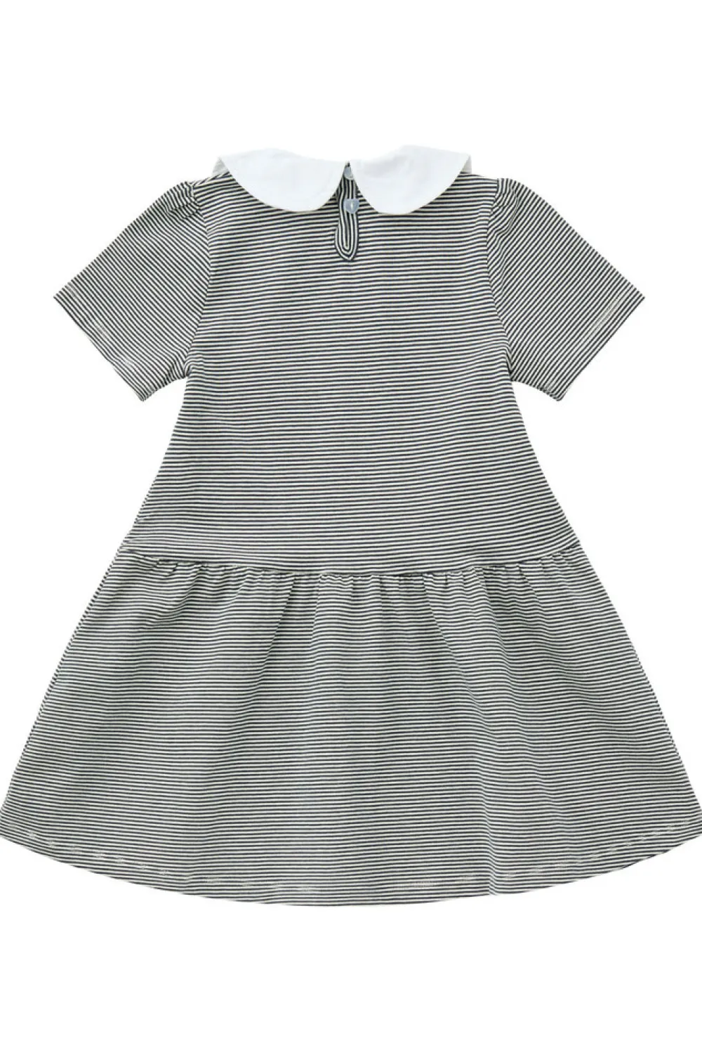 Den søde og stilfulde stribede kjole med poplin-krave er perfekt til enhver lejlighed! Kjolen har et klassisk stribet design med en kontrastkrave, der tilføjer ekstra charme. Fremstillet i blødt og behageligt materiale, så dit barn kan lege og bevæge sig frit hele dagen. Ideel til både hverdagsbrug og særlige lejligheder – den kan nemt styles med strømpebukser eller leggings og yndlingsskoene.