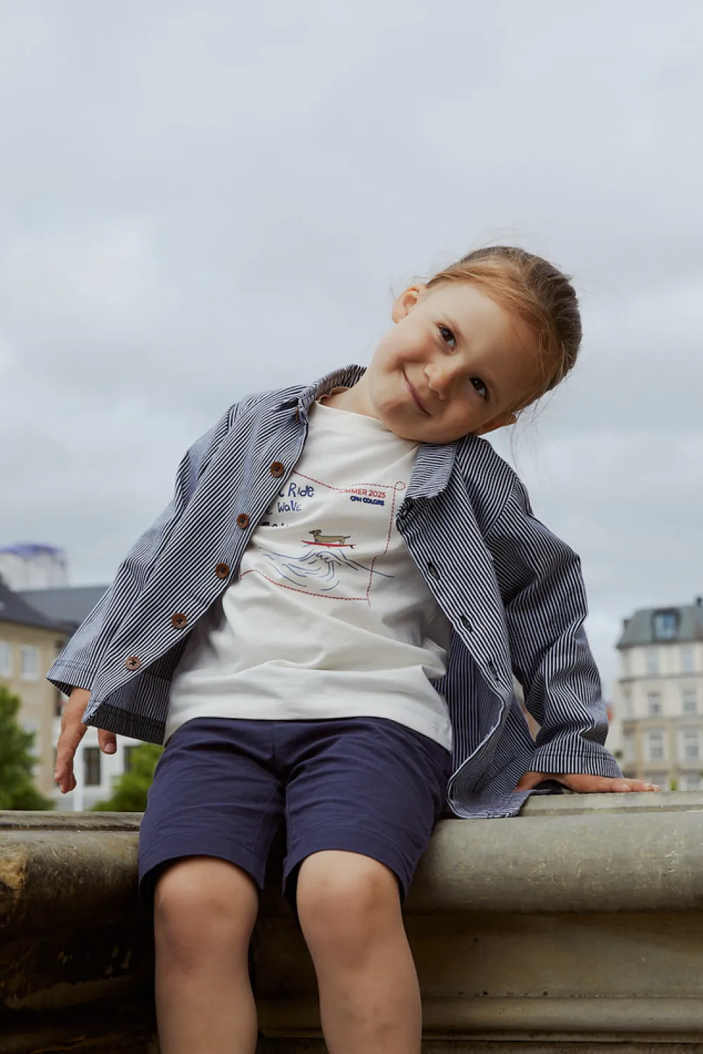 Denne jakke er designet med komfort i tankerne, den tilbyder en afslappet pasform samt rummelige lommer til at opbevare små skatte. Uanset om de leger udendørs eller slapper af derhjemme, er denne jakke den perfekte følgesvend til alle deres eventyr. Den kombinerer klassiske striber med moderne funktionalitet.