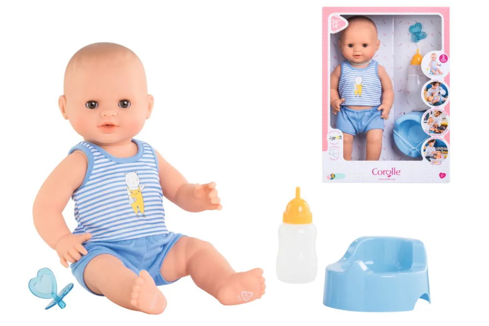 Denne søde babydukke er perfekt til små børn fra 2 år og opefter. Dukken kan drikke af sin flaske og tisse i potten, hvilket gør legen endnu mere realistisk og sjov. Den kan også bades, så dit barn kan tage den med i badekarret for endnu mere leg og hygge.