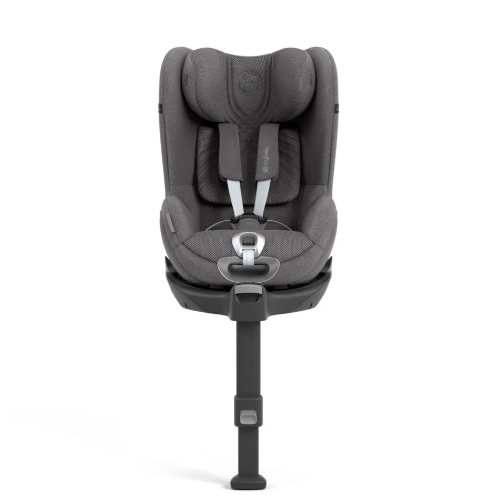 Nyd den ultimative rejseoplevelse med Cybex Sirona T i-Size autostol – sikkerhed for barnet, ro i sindet for forælderen. Dit barn kan nyde den høje komfort med funktioner som allround luftventilation, der giver behagelige temperaturer på alle årstider. 360° rotation giver dig mulighed for ubesværet at få barnet ind og ud af bilen, og hjælper dig med at skifte mellem bagudvendt eller fremadvendt kørsel. Det medfølgende spædbarnsindlæg giver en næsten flad liggende stilling, for sikker rejse fra fødslen. Babyens hoved holdes i den ideelle ergonomiske position, især under søvn, og når barnet bliver mere end 60 cm, skal spædbarnsindlæg fjernes. Sirona T i-Size har fem tilbagelænede positioner i både bagudvendte og fremadvendte positioner. Den kan også læne sig tilbage, mens den roterer på basen (tilkøb). At læne sædet tilbage kræver kun én hånd, og holder den anden hånd fri til andre opgaver. Sirona T i-Size udvikler sig med dit barn, takket være en højdejusterbar nakkestøtte designet til at imødekomme deres hurtige vækst. Med 12 forskellige nakkestøttepositioner kan du nemt tilpasse autostolen til dit barns højde i løbet af deres første fire år, hvilket giver en stabil beskyttelse gennem hele denne tid. Magneter på siden giver dig mulighed for at fastgøre spændetungerne på siderne af Sirona T i-Size, og holder selerne af vejen, når du skal have barnet ind eller ud af autostolen. Et gennemprøvet lineært sidekollisionssystem (LSP) øger sikkerheden i tilfælde af et side kollision. Sammen med autostolens energiabsorberende reducerer LSP den indledende slagkraft med op til 25 % (sammenlignet med det samme sæde uden LSP ved brug af ADAC testkriterier). Ved en kollision skubbes barnet mod sædeskallen, hvor kræfter fordeles og mister stød. Bagudvendt er obligatorisk i mindst 15 måneder (76 cm.). Derefter kan du dreje Sirona T-Size fremadvendt, men bagudvendt så længe som muligt er nu bedst. Gør dig klar til salige ture med dit barn med Sirona T i-Size.