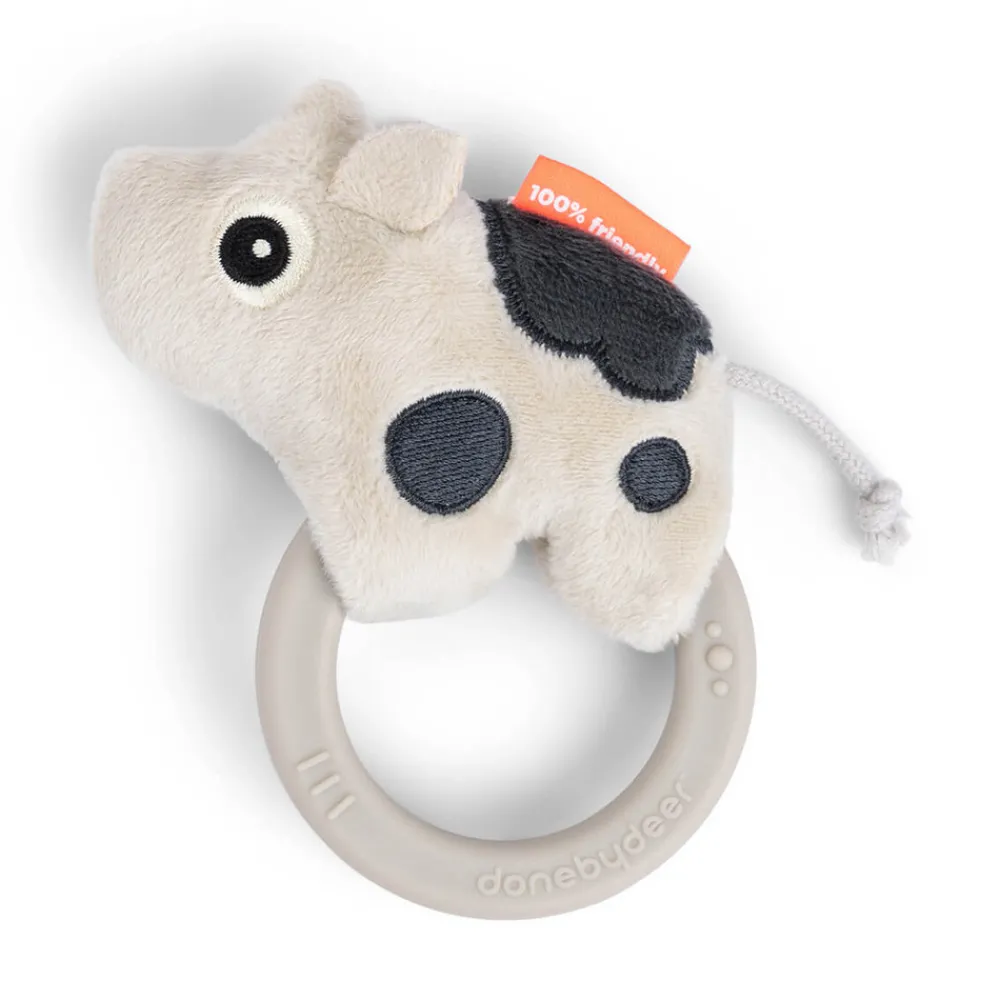 Bideringen i silikone er perfekt til at stimulere og berolige kløende tandkød, hvilket gør den ideel under tandfrembrud. Den fine, rolige farve med kontrastfarver giver visuel stimulering, der fanger dit barns opmærksomhed.