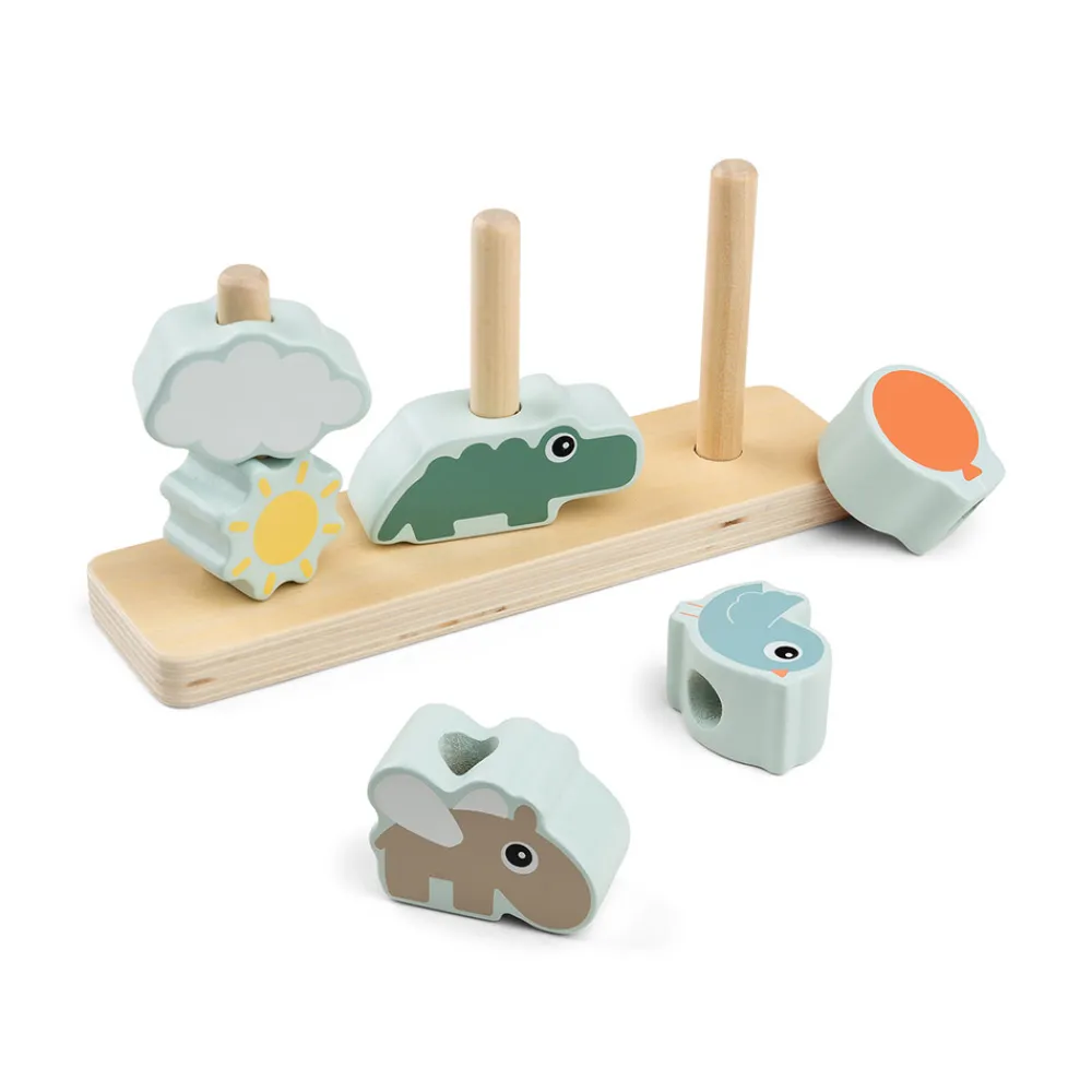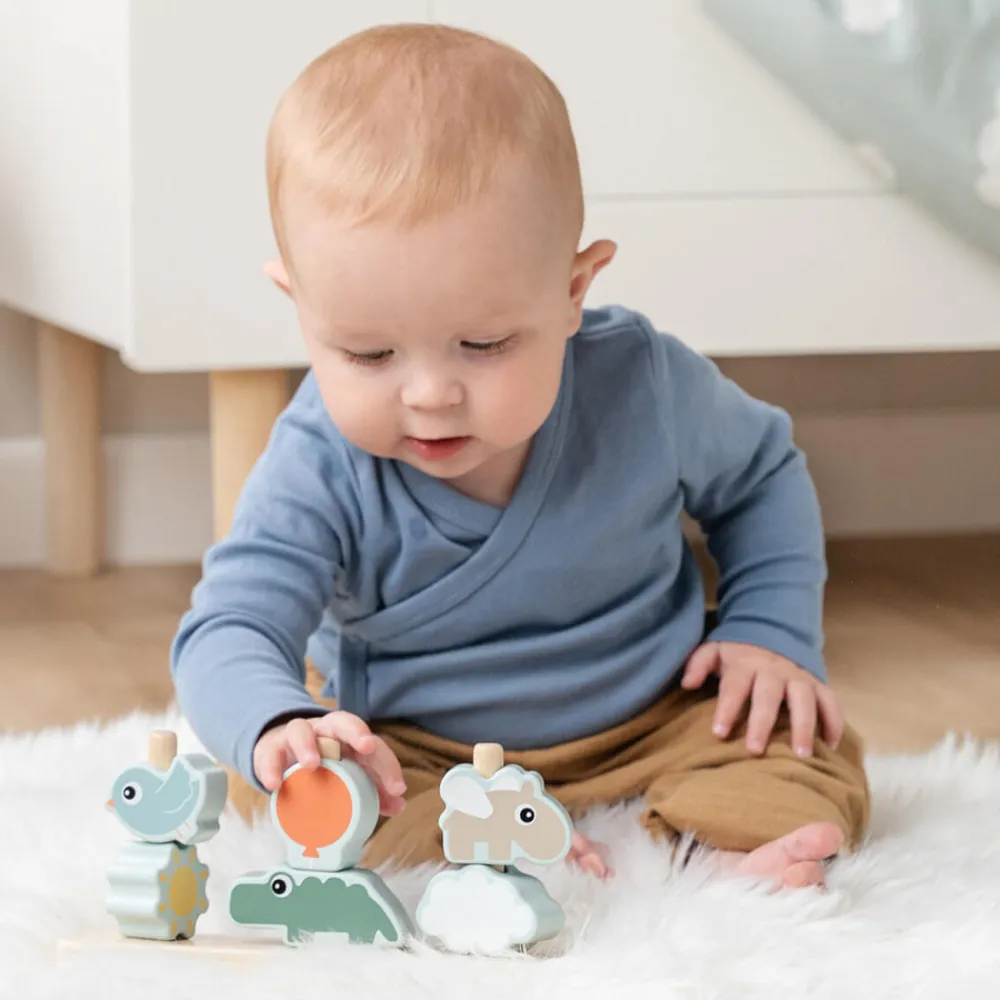 • Happy clouds stablelegetøj med 6 klodser, som små fingre kan placere og matche på kryds og tværs