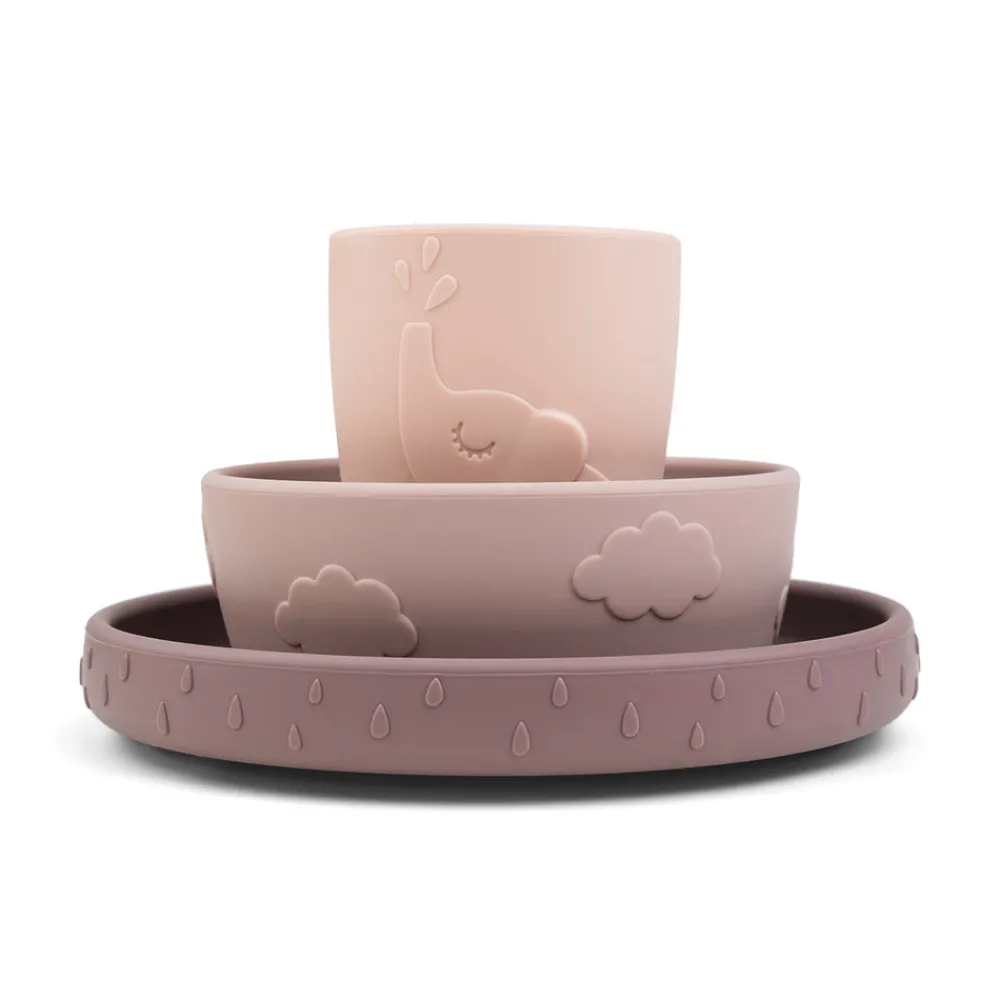 • Spisesæt bestående af en tallerken, en skål og en minikop