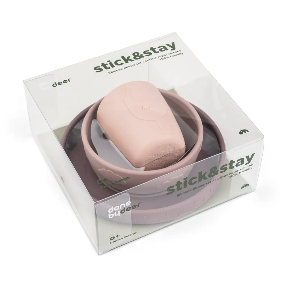 • Sugekoppen under tallerkenen og skålen holder servicet på plads under måltidet