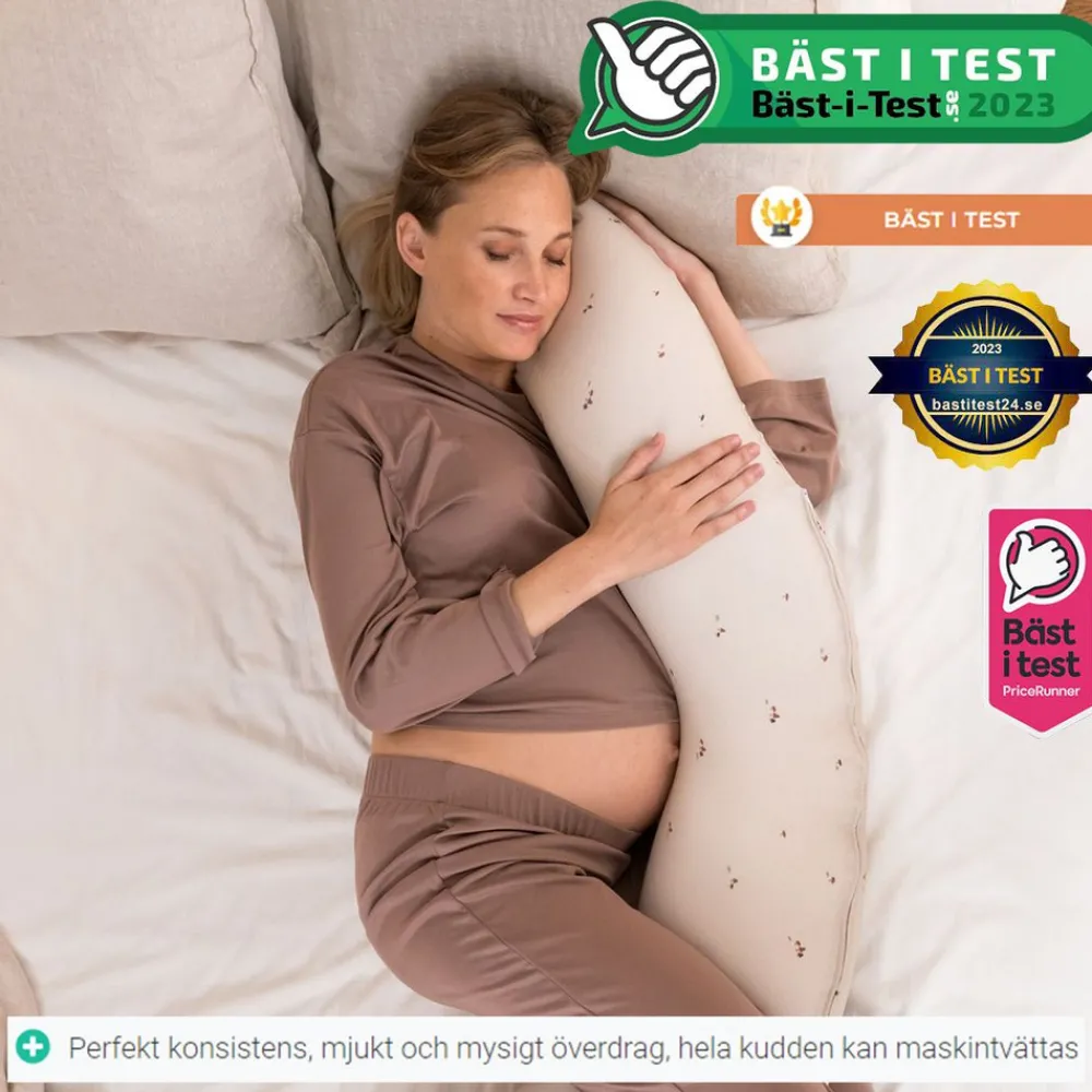Multifunktion; graviditets- og ammepude, ligge- og siddestøtte til barnet Produktstørrelse: 180 cm (ydre omkreds)
