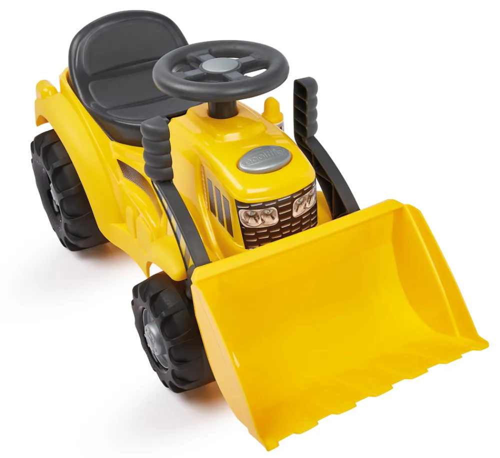 Ride-on gummiged i autentisk design, som er udstyret med en frontskovl der kan manøvreres.