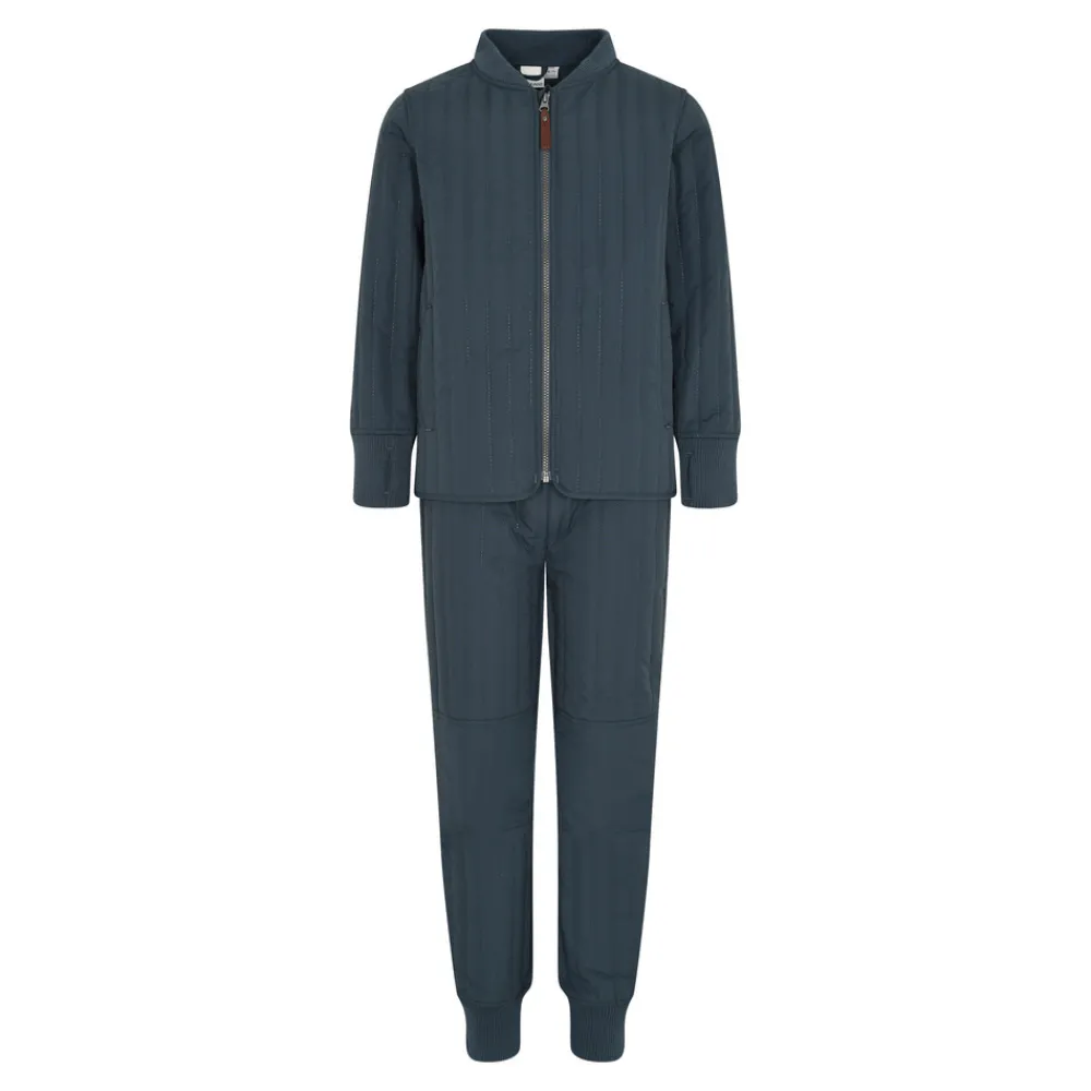 Fantastisk termosæt fra EN FANT. Dette termosæt er fremstillet i et vandtæt materiale, hvilket gør sættet super praktisk. Lynlås fortil, justerbar talje samt ribkanter ved halsåbning, ærmer og ankler.