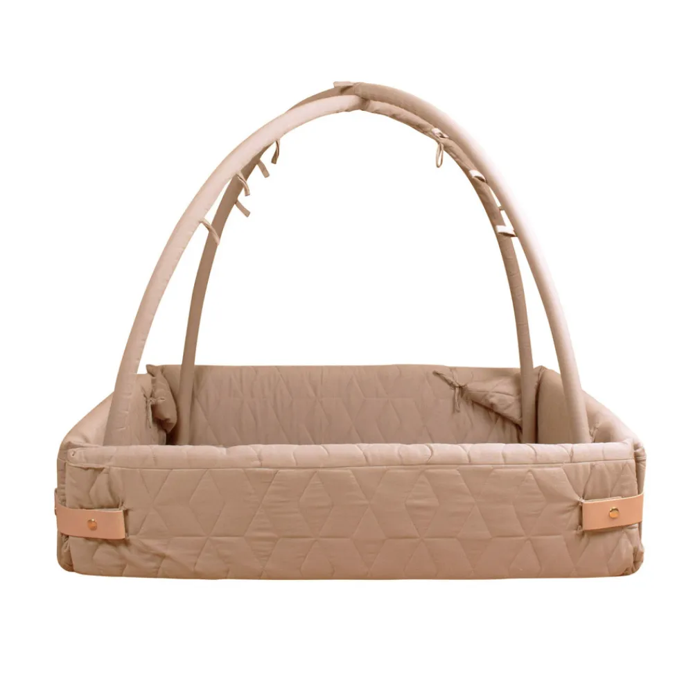 Aktivitetsnesten er udviklet til at vokse med barnet, da den har flere funktioner. Brug den som kravlegård, aktivitetstæppe, legetæppe, babynest. Når baby er helt lille kan aktivitetsnesten med fordel bruges med siderne lukket og med aktivitetsstænger på, til at hænge legetøj i eller stængerne kan tages helt af og man har en større baby nest – evt. til tvillinger. Samtidig kan siderne foldes ned, hvis man vil sidde på tæppet sammen med den lille eller når den lille begynder at kravle rundt. Når barnet bliver større kan man bruge den som legetæppe med siderne foldet ned og uden stænger monteret.