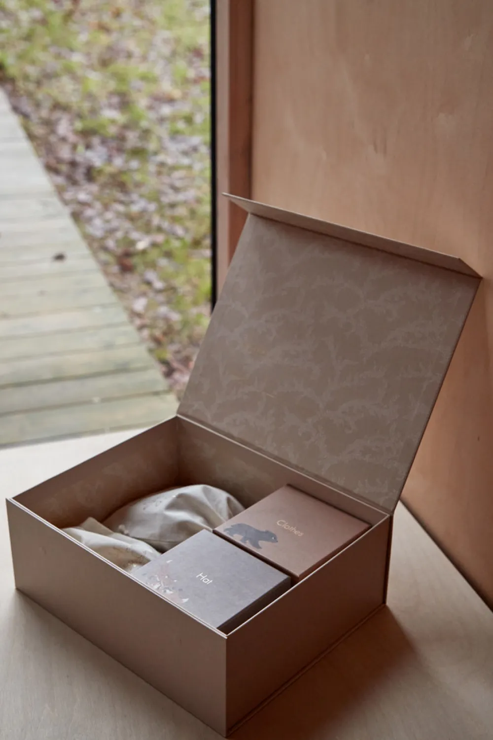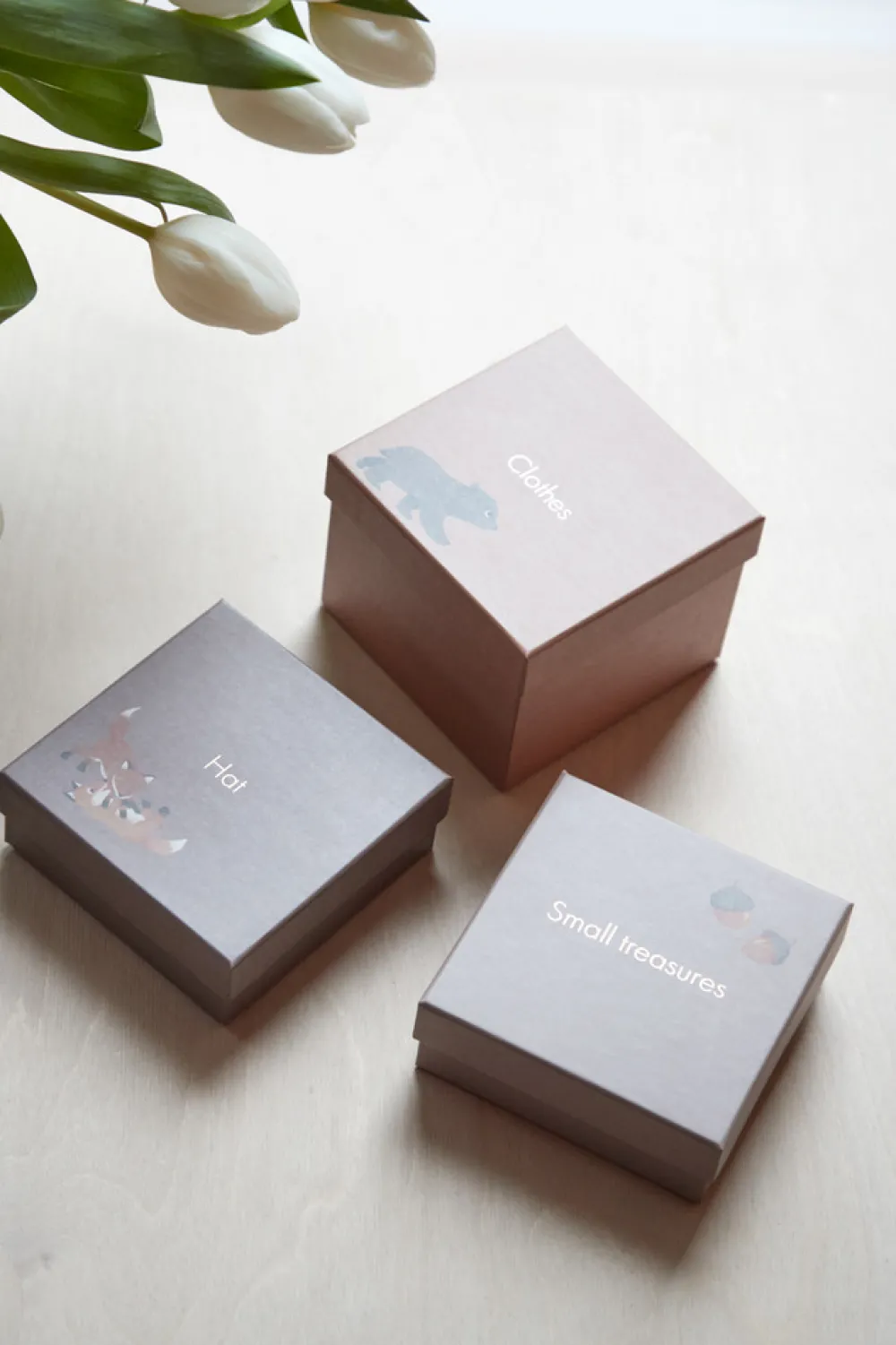 Fire små æsker til tøj, små skatte, den første hue og den første mælketand.