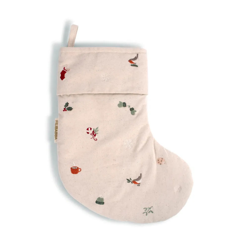 Den fine sok er lavet af ufarvet økologisk bomuld og let vatteret, så den beholder sin form.