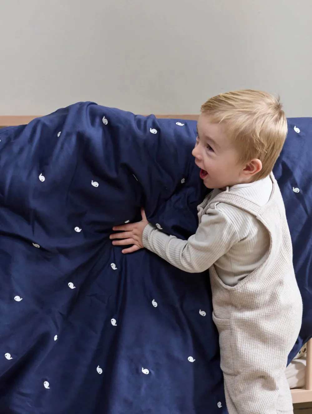 Os forældre bruger meget tid på at hjælpe vores kære små med at falde i søvn, og findes der egentlig en bedre måde at slutte dagen på end at blive puttet ned i små glimt af glæde med et kys? Lad din baby blive omfavnet af det blødeste sengesæt i 100% GOTS-certificeret økologisk bomuld med broderede is.