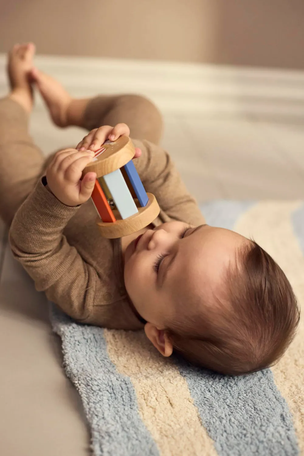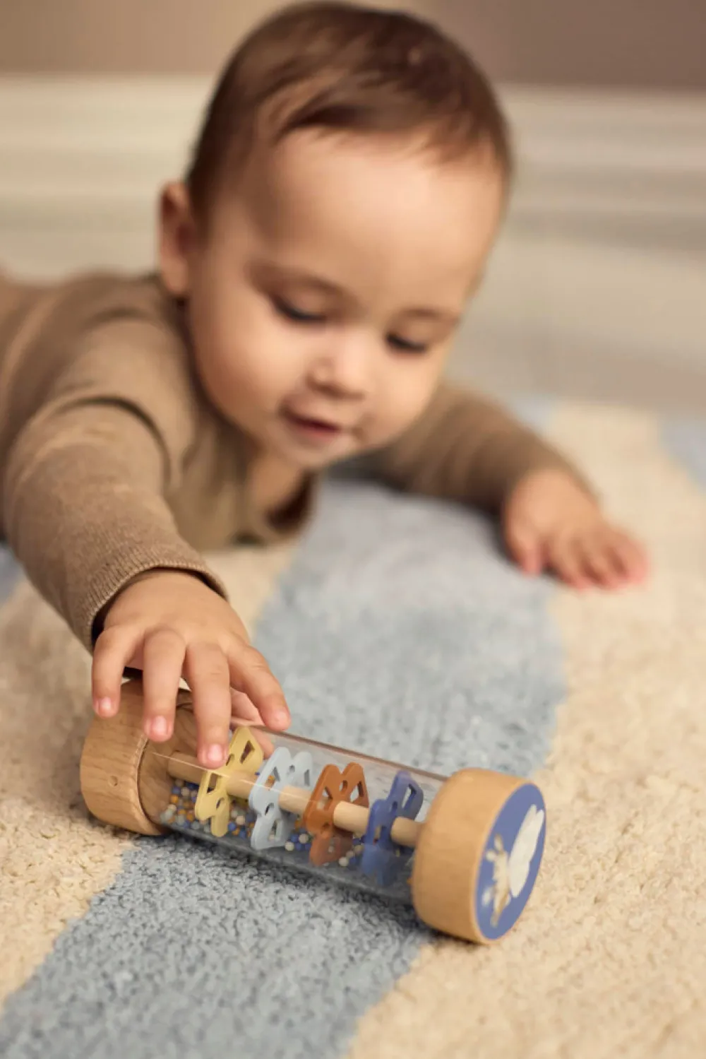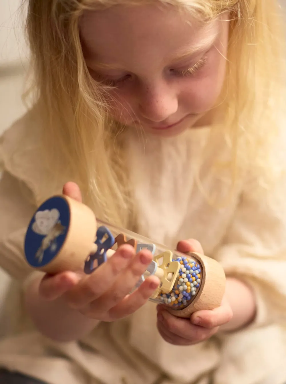 Introducer dit barn til lydens og bevægelsens vidundere med dette charmerende sæt af sanselegetøj i træ. Omhyggeligt designet til små hænder og nysgerrige sind, inspirerer sættet de små til at udforske rytme, tekstur og lyd på en engagerende og stimulerende måde. Perfekt til at fremme tidlig sanseudvikling og skabe dyrebare øjeblikke for både babyer og forældre.Sanselegetøjet leveres i en smuk kuffert, som gør det nemt at opbevare legetøjet, når det ikke er i brug, eller tage det med på farten. Den dekorative kuffert med metalhåndtag og hængsler fungerer som et smukt blikfang på dit barns værelse og kombinerer funktionalitet og charme på bedste vis.Kort om mig:- Indeholder 3 sanselegetøj: maracas, rasle med klokke og rainmaker-rasle.- Legetøjet er lavet af birk og schima-træ.- Pakket i en holdbar papkuffert med metalhåndtag og hængsler.- Fremmer sanseudvikling gennem lyd, tekstur og bevægelse.- Egnet fra: 6 måneder.