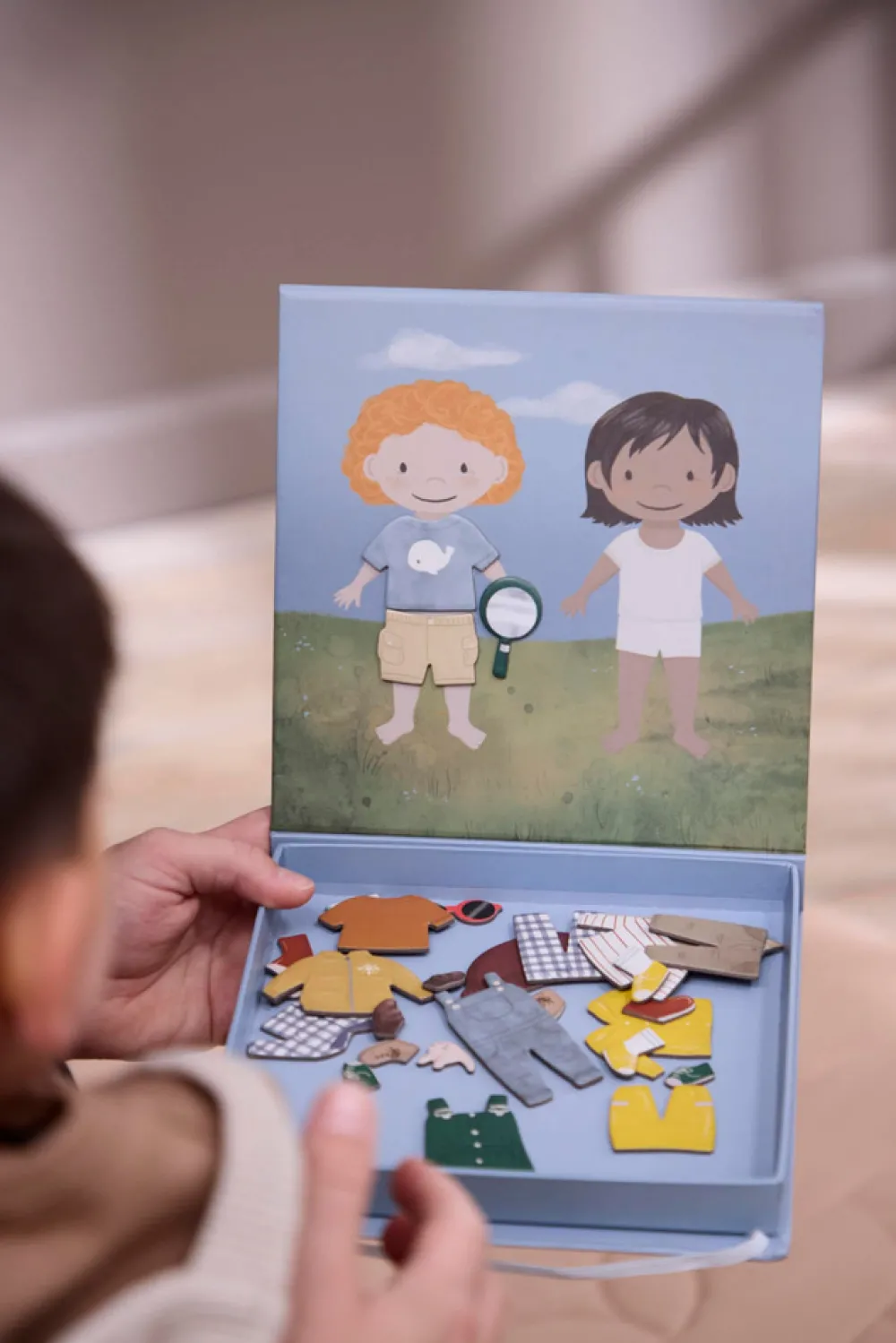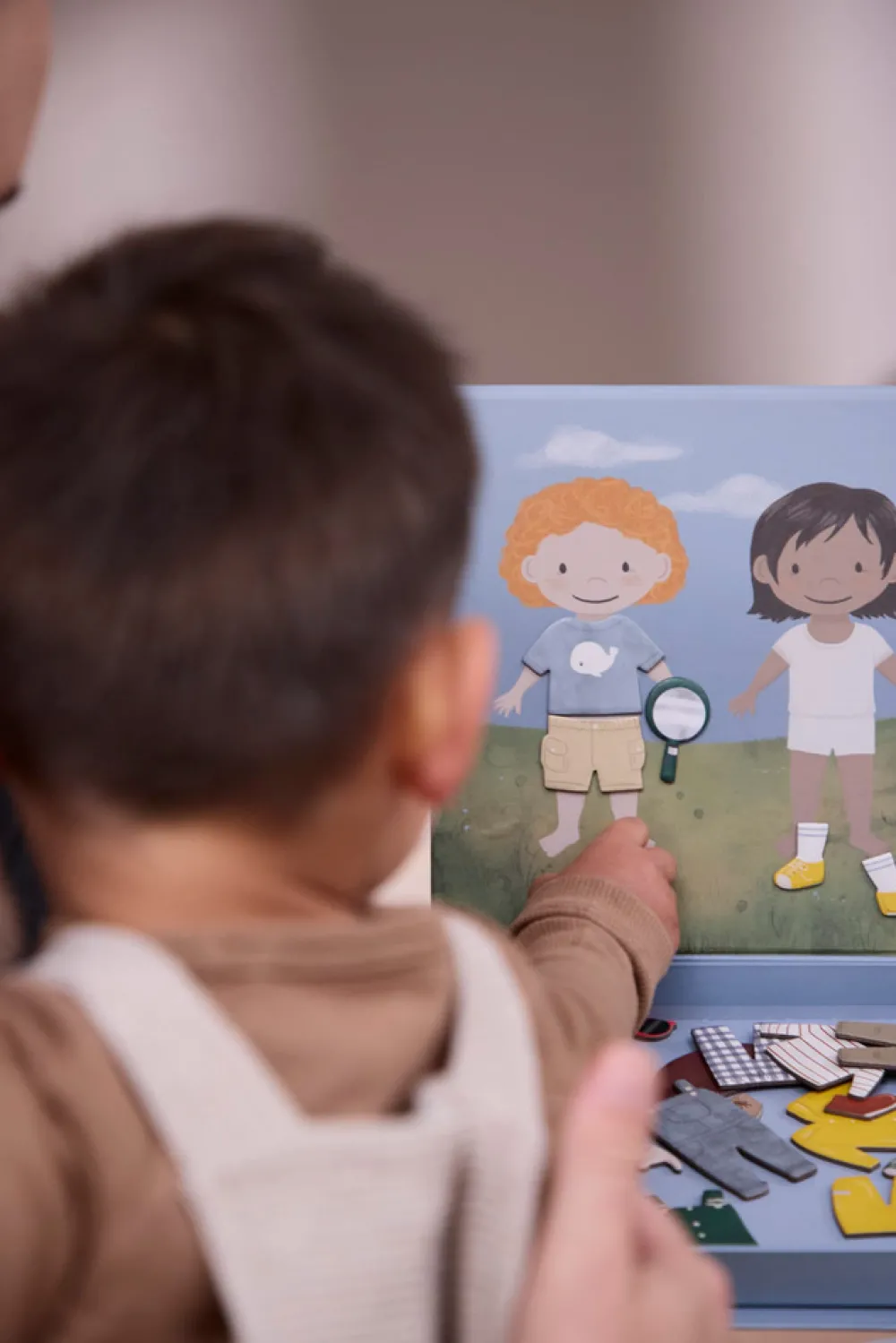 Det praktiske magnetspil med de farverige, håndtegnede påklædningsdukker og masser af tilbehør inviterer til ro og afslapning efter en lang dag.