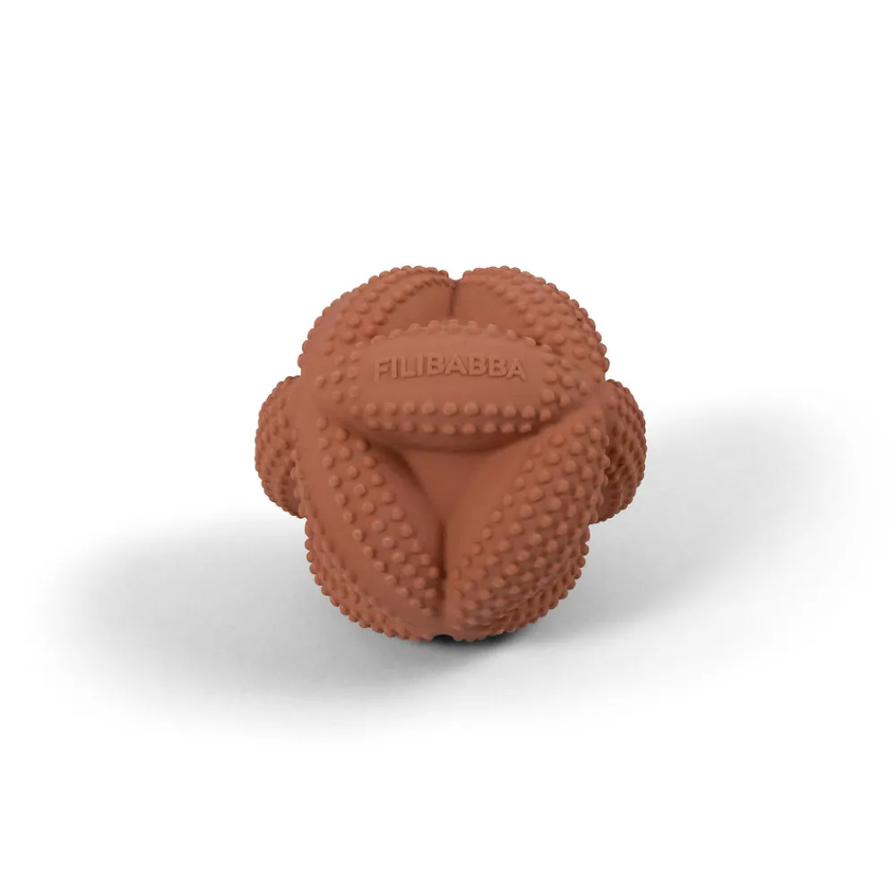 Isa grab ball er designet med henblik på motorisk udvikling. Med hjertet i Fillibabba´s produkter har de skabt en bold-kollektion med taktile overflader, gode egenskaber og fin farvenuance. Isa grab ball er produceret i 100% naturgummi og er med til at stimulere barnets motorik og gribereflekser. Med en fin mild klokkelyd indeni stimulerer den også barnets høresans. På overfladen er der produceret små dupper, som giver et godt greb for selv helt små hænder, samtidig er alle kanter bløde, så de kan hjælpe på ømme gummer og er samtidig stimulerende for den taktile sans. Fantastisk produkt til at udvikle barnets finmotorik.