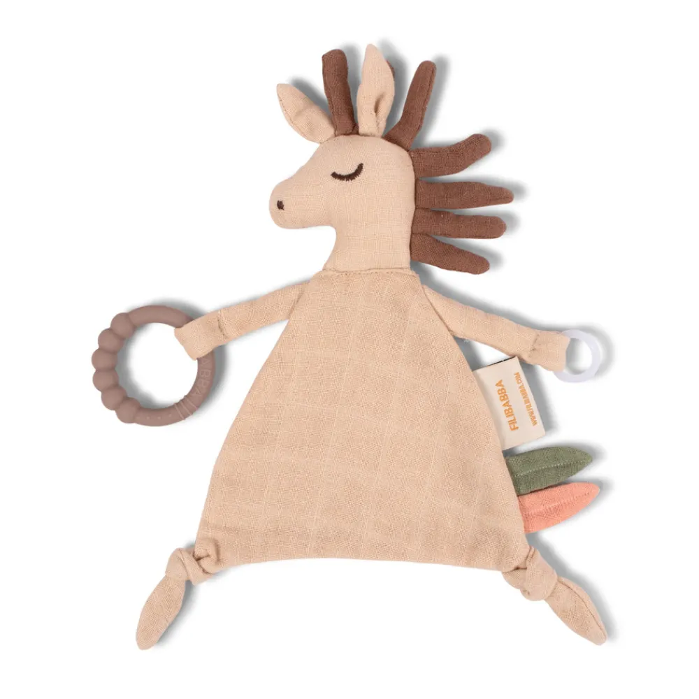 Hesten Henrys blide ansigtsudtryk vil hurtigt fange din babys interesse og har masser af fine detaljer, som de små hænder bare må udforske. Alle små detaljer er naturligvis broderet på legetøjet, så du behøver ikke at bekymre dig om små dele. Nussekluden er godkendt fra 0+.
