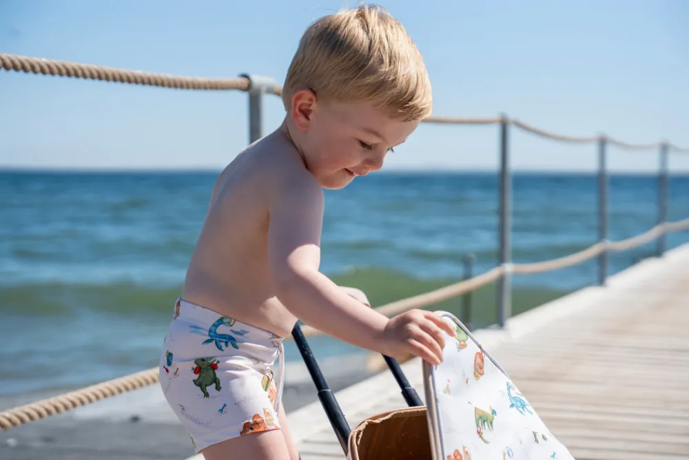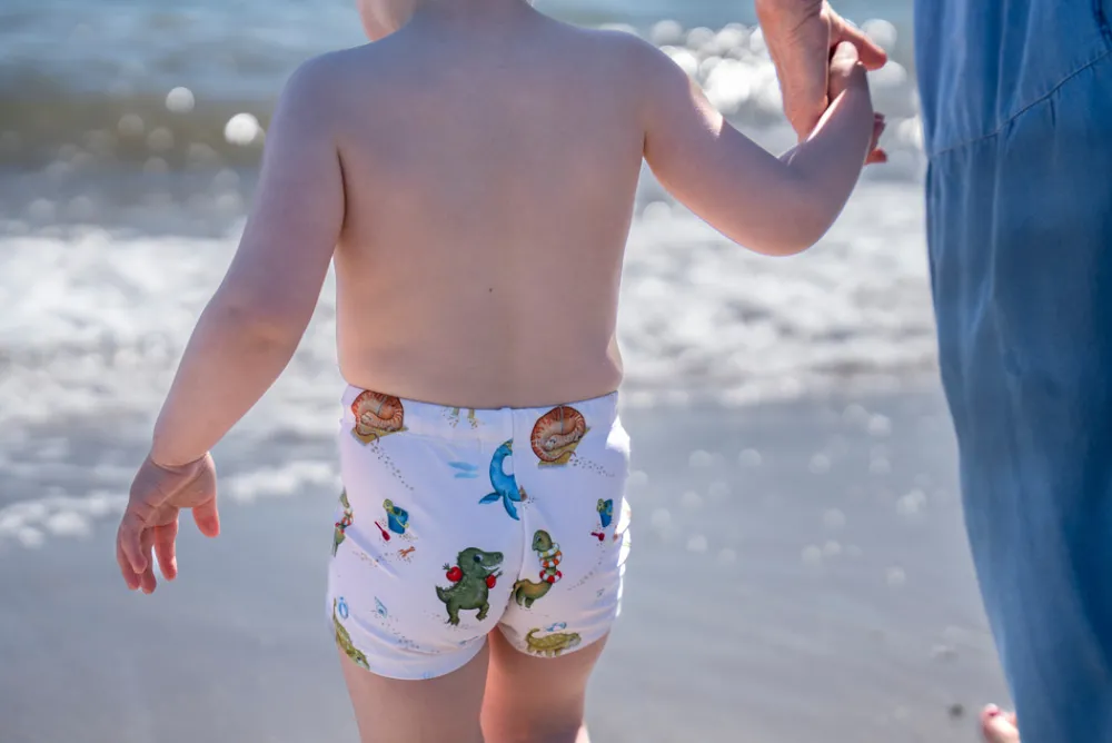 Badeshortsene begejstrer små og større børn med flotte, håndtegnede motiver.