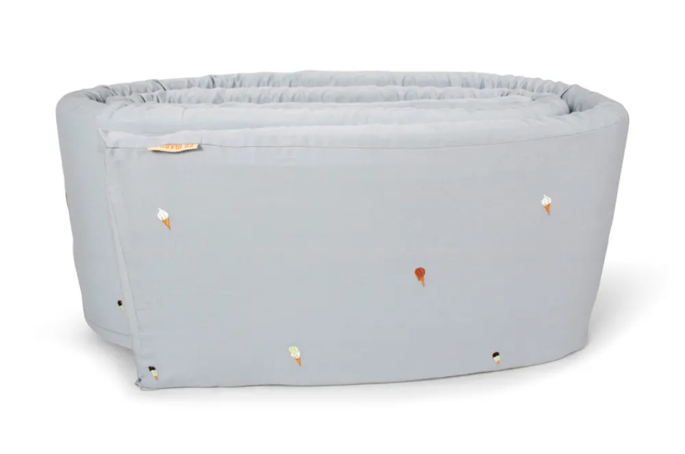 Forældre bruger meget tid på at hjælpe vores kære små med at falde i søvn, og findes der egentlig en bedre måde at slutte dagen på end at blive puttet ned i små glimt af glæde med et kys? Sengerand er designet til at skabe en hyggelig stemning i enhver krybbe og tremmeseng. Hvis din seng er mindre, skal du blot lægge sengerandens ender over hinanden. Den 4 cm tykke polyesterskumkerne hjælper sengeranden med at stå oprejst, så du ikke skal fastgøre den til sengen med f.eks. bånd. Derudover sikrer den ekstra tykke kvalitet, at din baby ikke slår hovedet ind i sengens hårde tremmer. Den integrerede lynlåsfunktion hjælper dig med at tage betrækket af, så du kan vaske det efter behov. Husk at trække betrækket i form og putte det direkte på skumkernen efter i vask. Lad betrækket tørre på sengeranden for at mindske risikoen for, at det krymper.