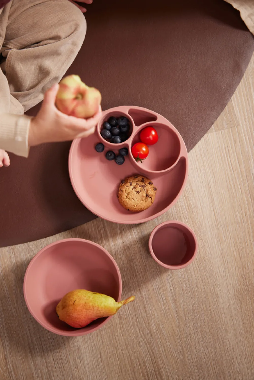 Fin mellemstørrelse kop der passer til mange størrelser børnehænder. Koppen er fremstillet i 100% silikone med en blød overflade, som både giver en behagelig følelse og et fast greb til børnehænder. Det er den ideelle kop til en børnefamilie, hvor det gerne må se fint ud, men samtidig skal være praktisk, derfor holder produktet også til fald på gulvet. Når det skal gå hurtigt, tåler produktet ovn, mikroovn og opvaskemaskine.