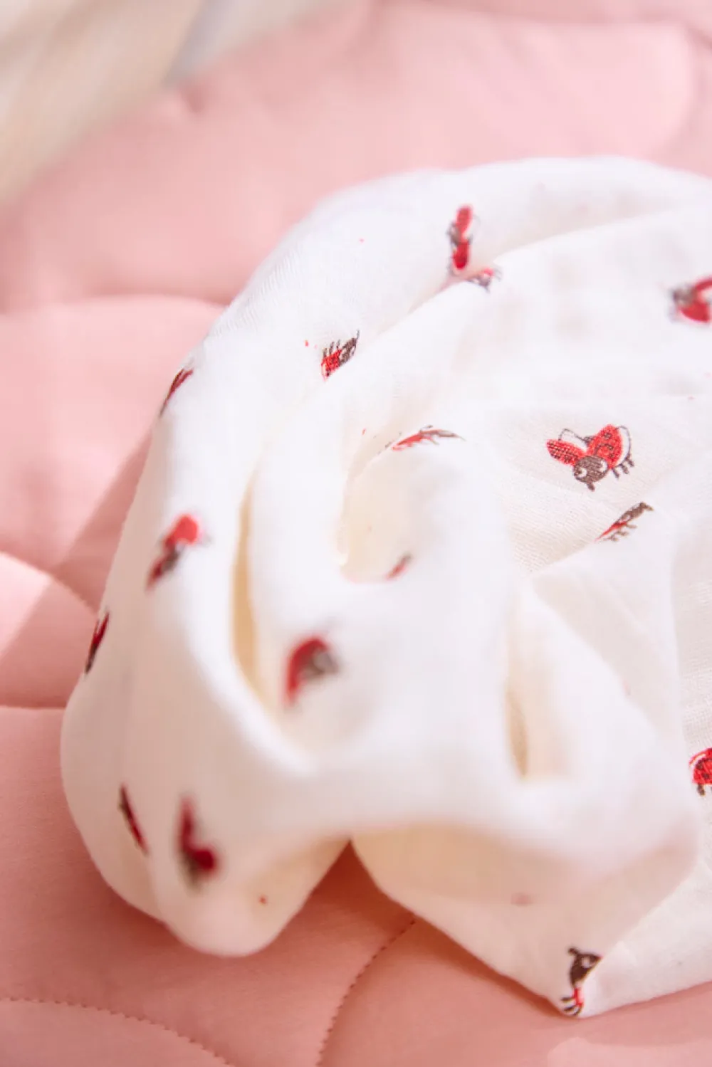 GOTS-certificeret økologisk bomuld musselin.Løst vævet og meget åndbar.Kan vaskes ved 40º.65×65 cm.
