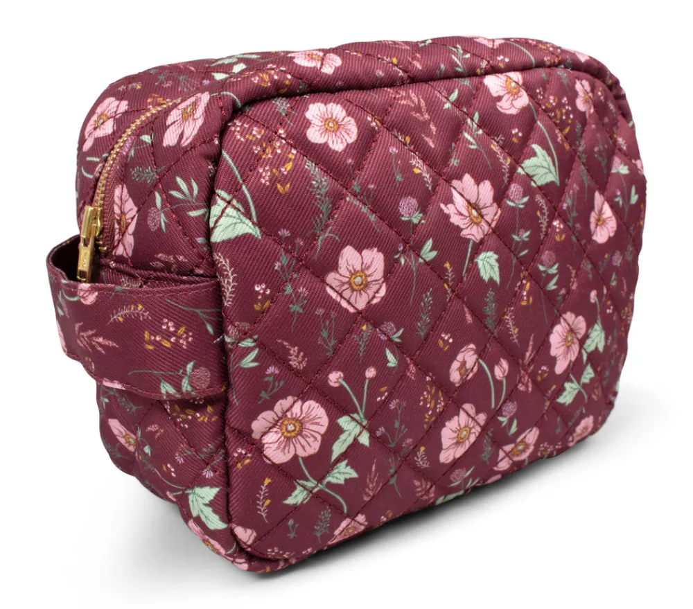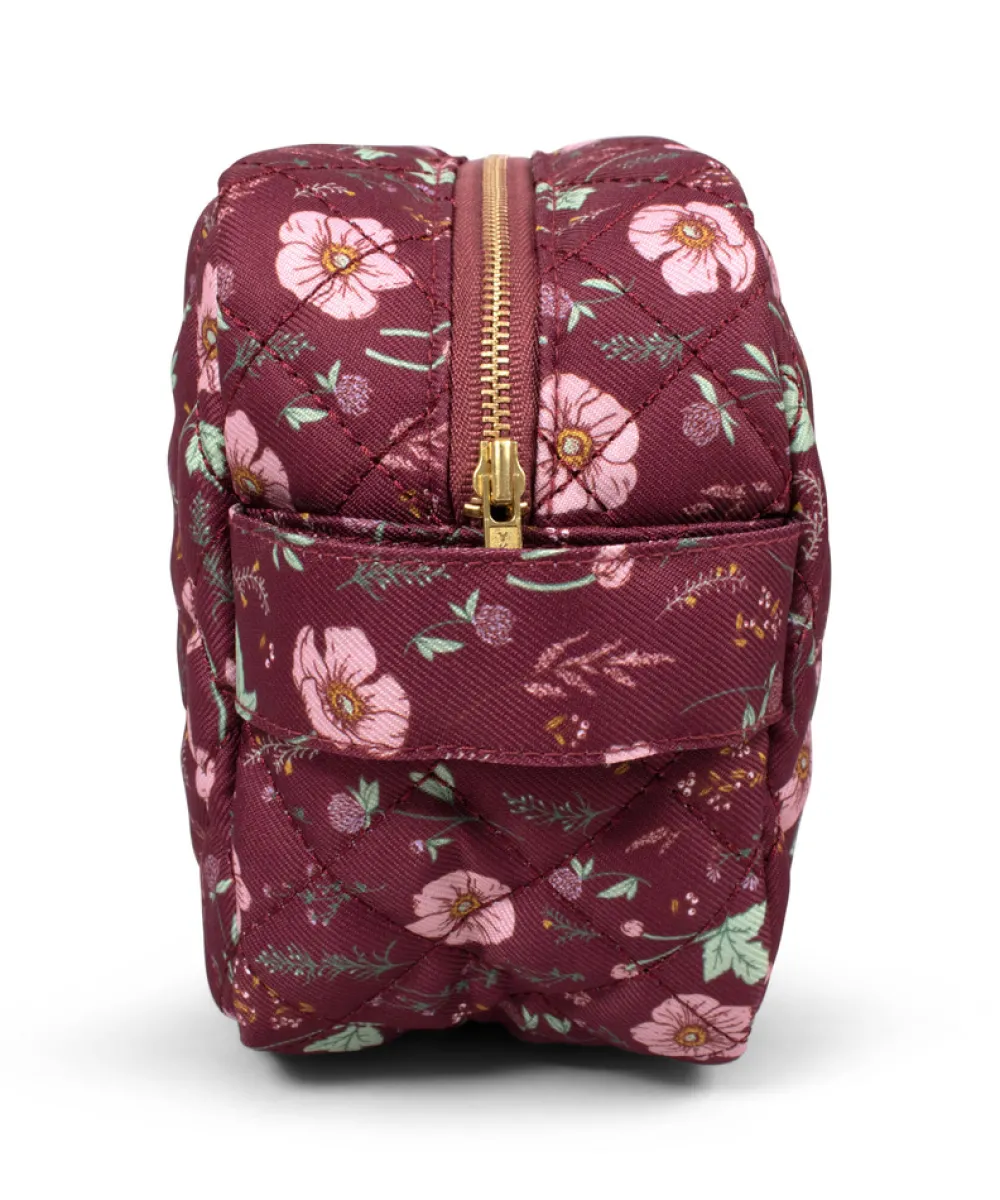 Praktisk toilettaske i genanvendt RPET-polyester, som er slidstærkt og nemt at tørre af. Toilettasken er i farven Fall Flowers, som ikke alene er flot, men også praktisk. Indeni har tasken en tone-i-tone linning og en lille sidelomme, så det er nemt at organisere make-up eller andre småting. Toilettasken har en fin guldfarvet YKK lynlås, som er det førende mærke inden for kvalitets lynlåse.