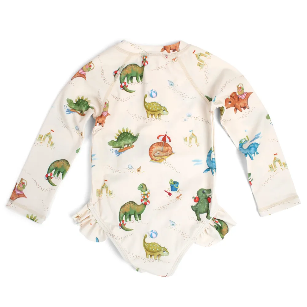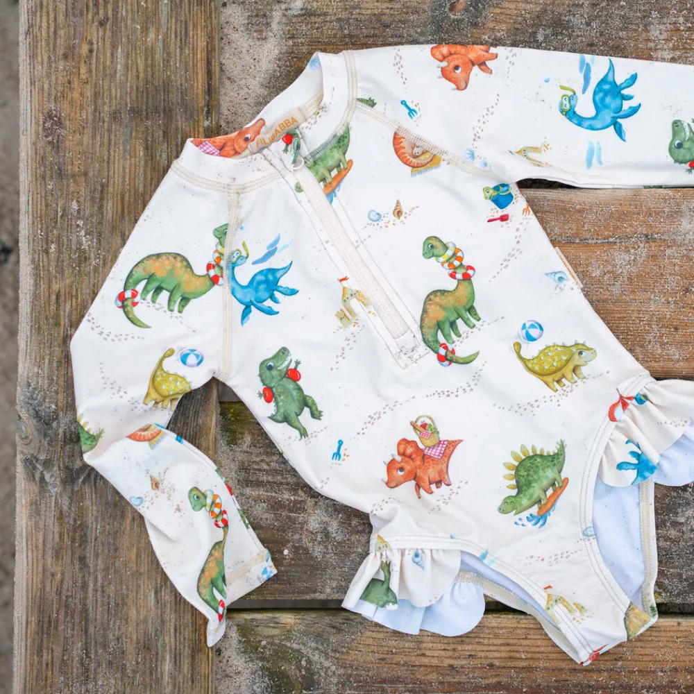 Med en charmerende UV-dragt til børn bliver sommerdagene i svømmehallen, på stranden eller i haven endnu mere fantastiske! Den fine dragt med lange ærmer og det sødeste flæseskørt giver UV50+ beskyttelse og er behagelig for barnet at have på. UV-dragterne begejstrer små og større børn med flotte, håndtegnede motiver.